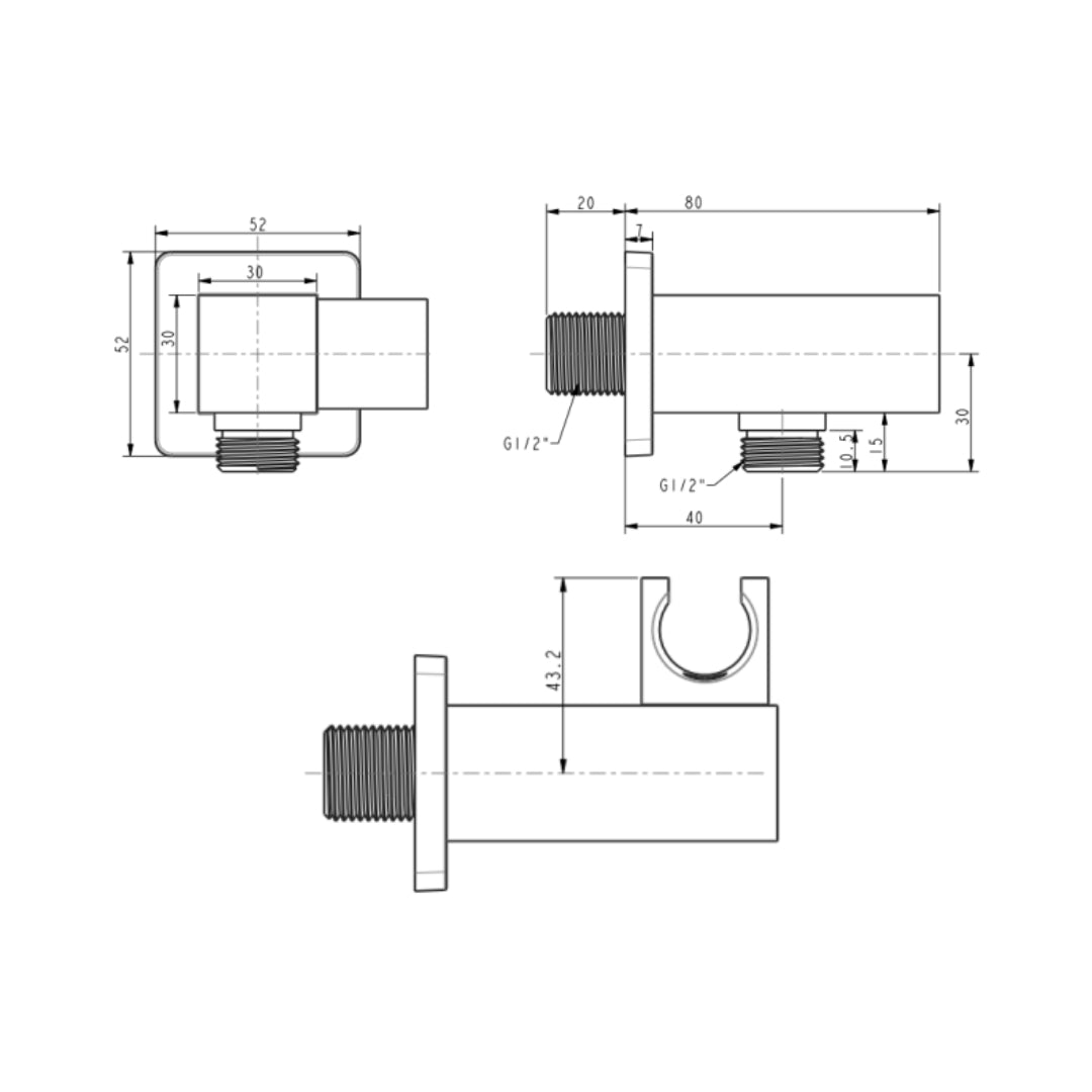A wall outlet for a hand shower is a plumbing fixture that connects the water supply to the hand shower hose, ensuring a neat and secure connection. Typically installed on the shower wall, it provides a streamlined point for water to flow into the hand shower. Designed to blend seamlessly with bathroom decor, wall outlets come in various finishes like chrome, brushed nickel, or matte black. They are compact, easy to install, and compatible with different hand shower hoses and fittings.