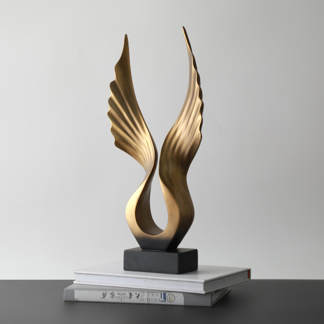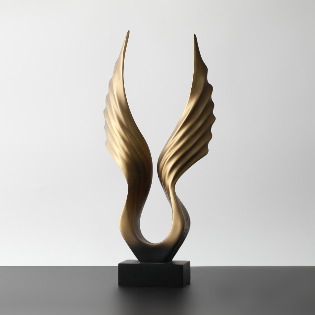 Explore the artistry of contrast with the Artistry Wings Flying High: Gold & Black Resin Desktop Sculpture. Crafted with precision from dynamic gold and black resin, this desktop sculpture embraces the duality of design. Its striking form adds an air of sophistication to any workspace, making it a conversation piece and a testament to artistic expression. Invite this exquisite sculpture to be the focal point of your desk, symbolizing the beauty of balance and duality in art and life.