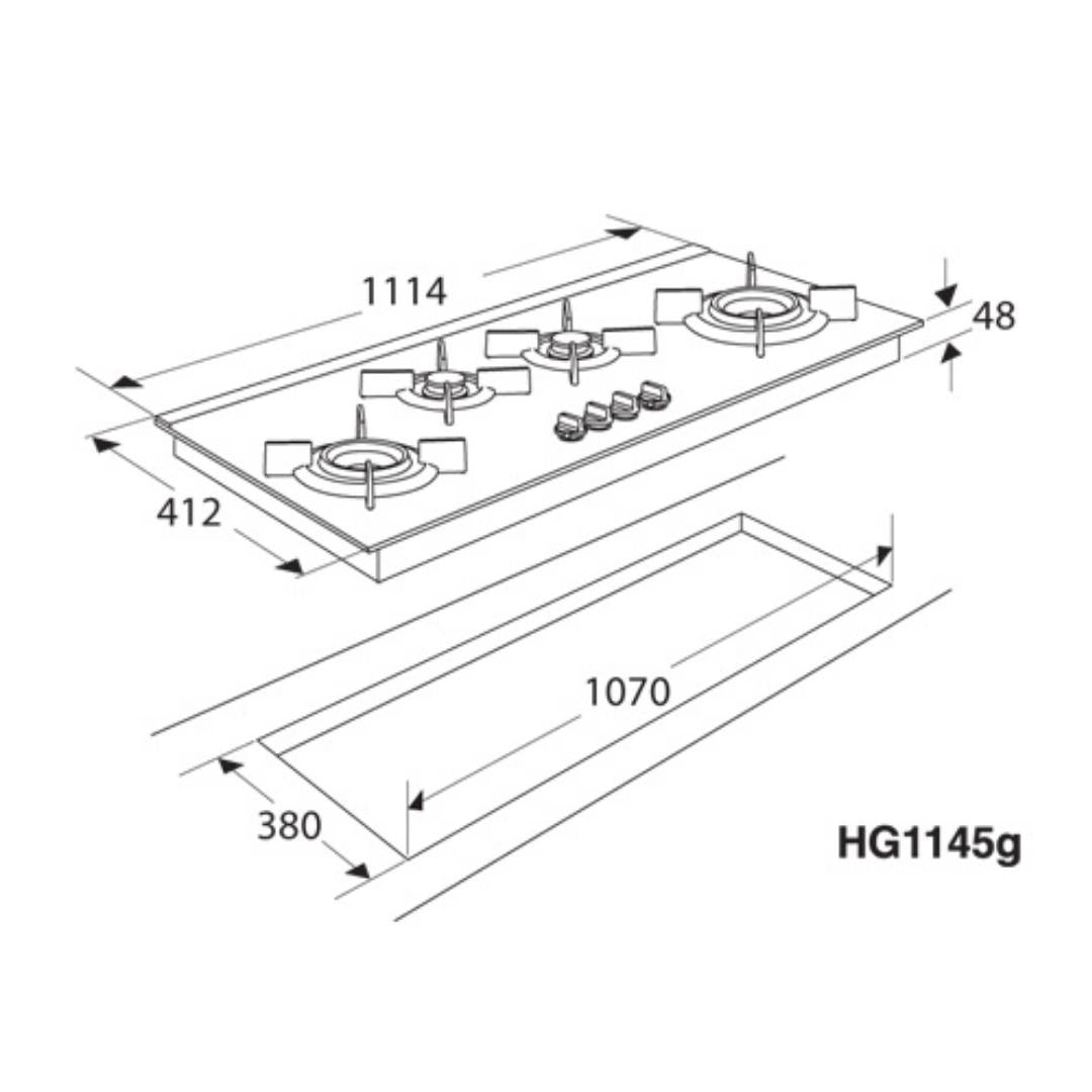 - 110 cm 4 burner (with two high power wok burners) hob