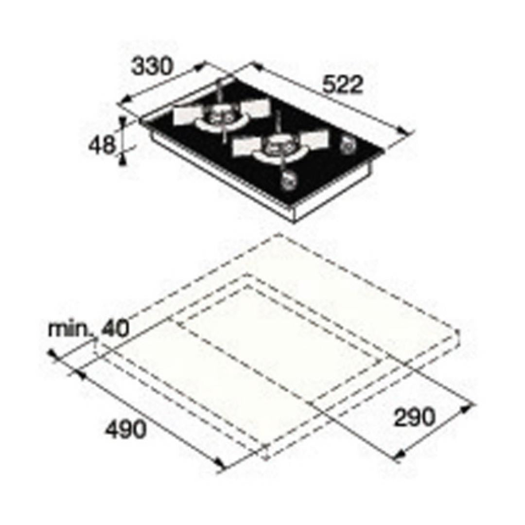 - 33 cm 2 burner with A+ Burner on glass domino hob
