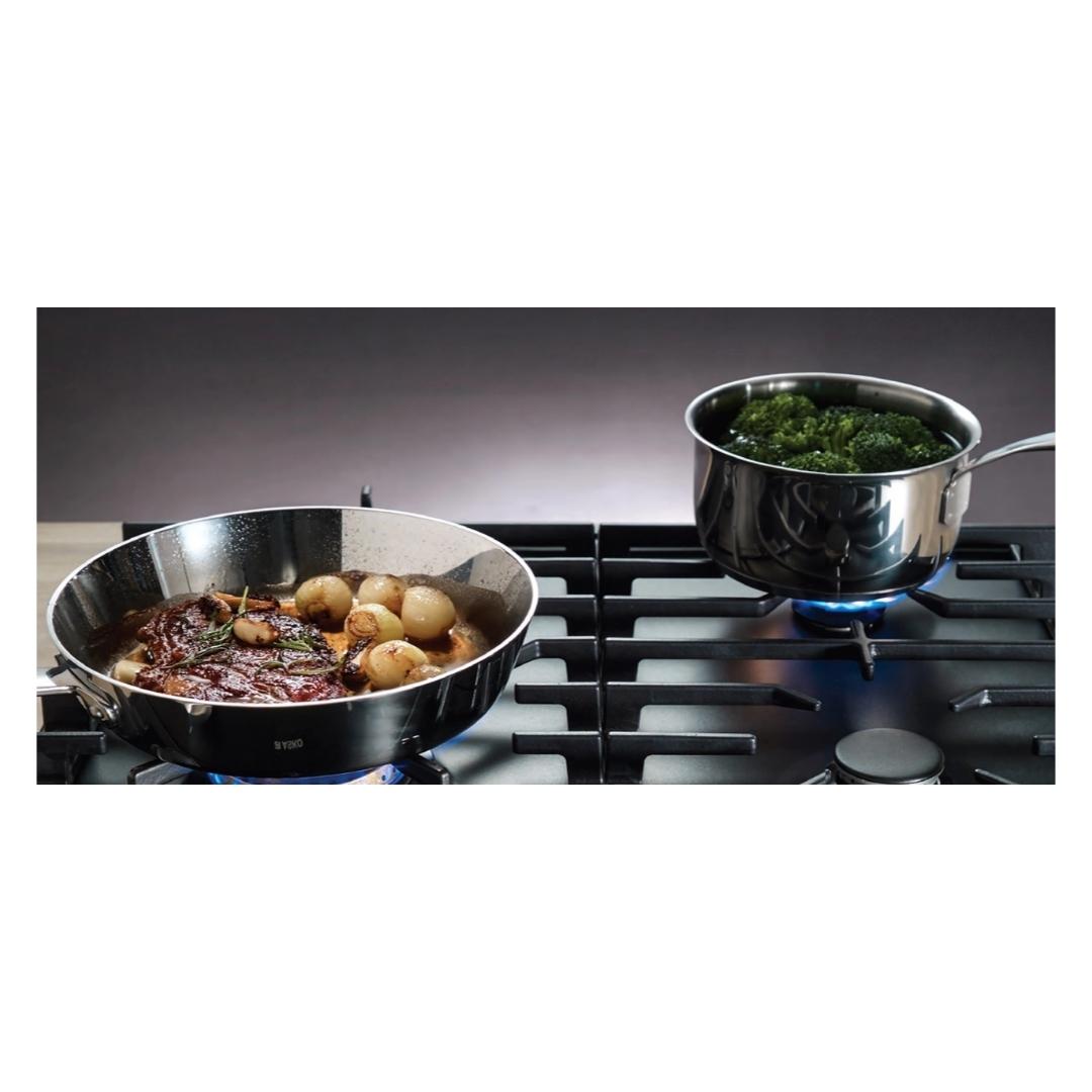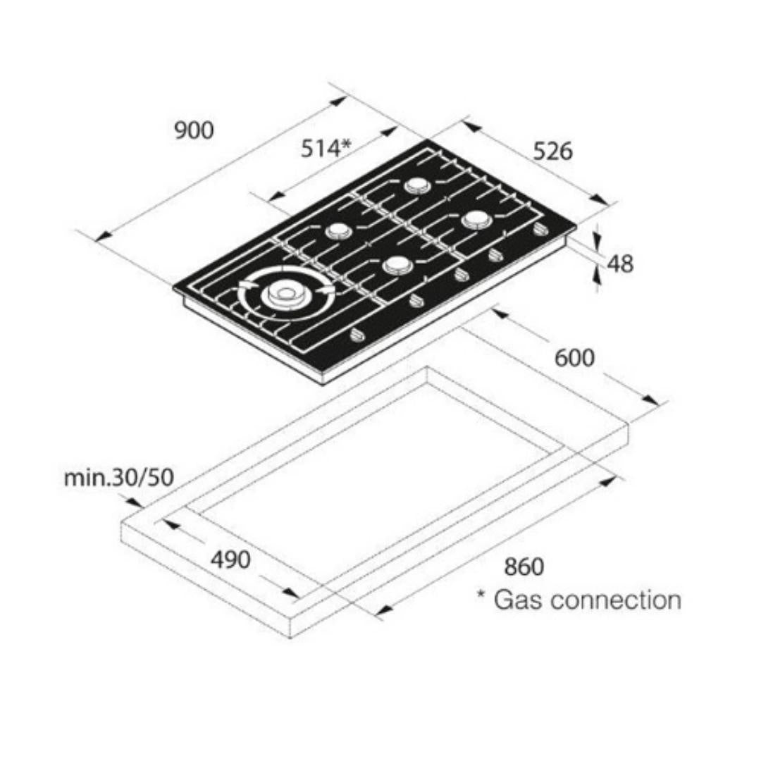 - Gas hob with four powerful A+ hybrid wok burners and one hotplate Super Flex Wok burner.