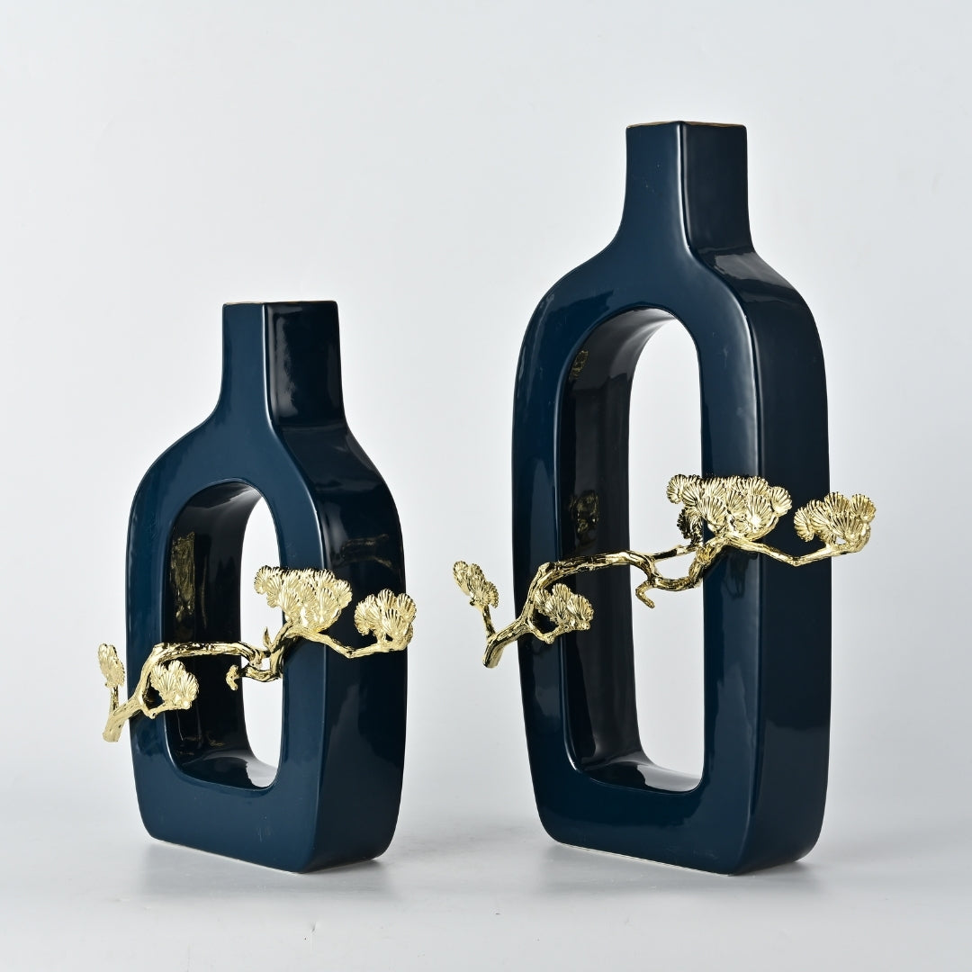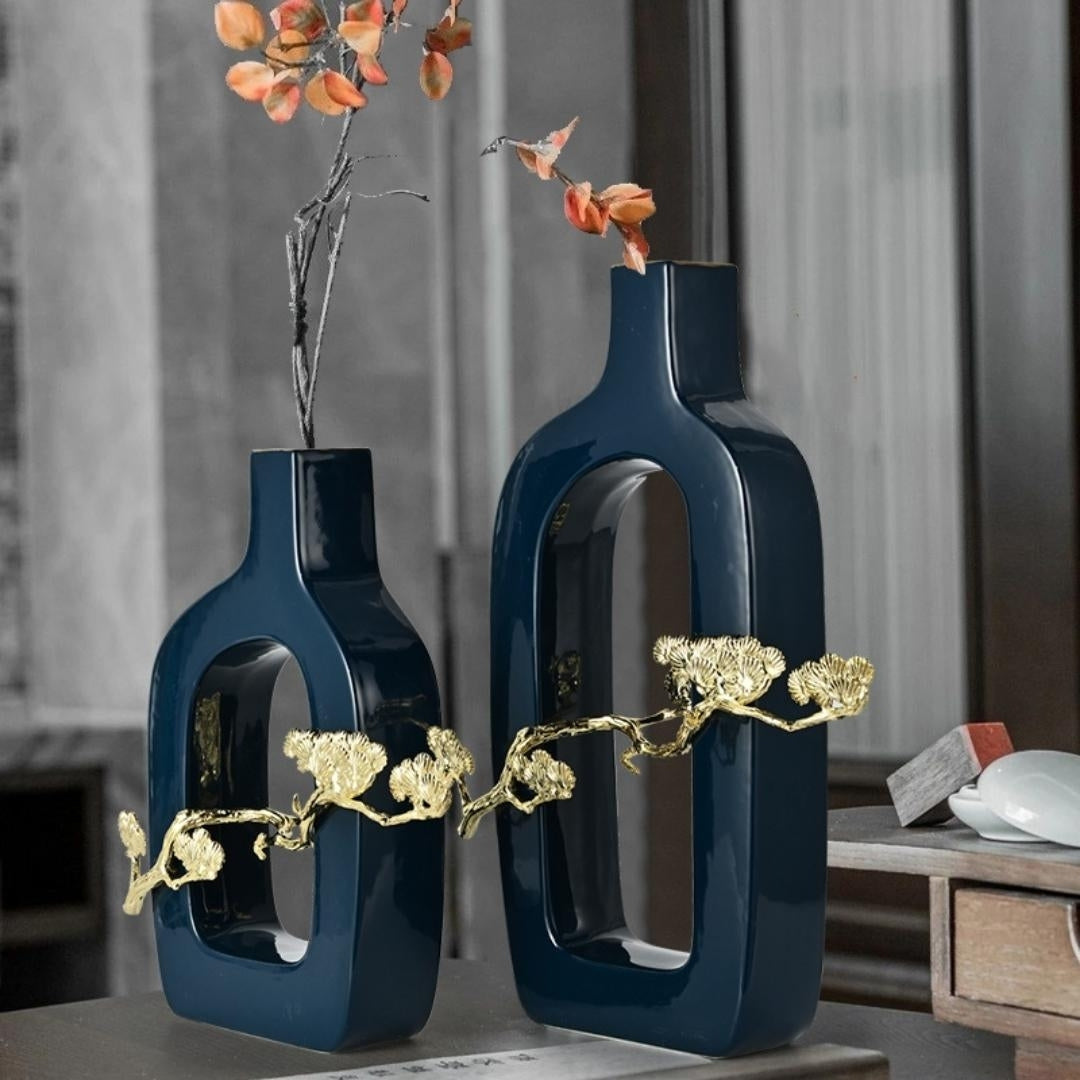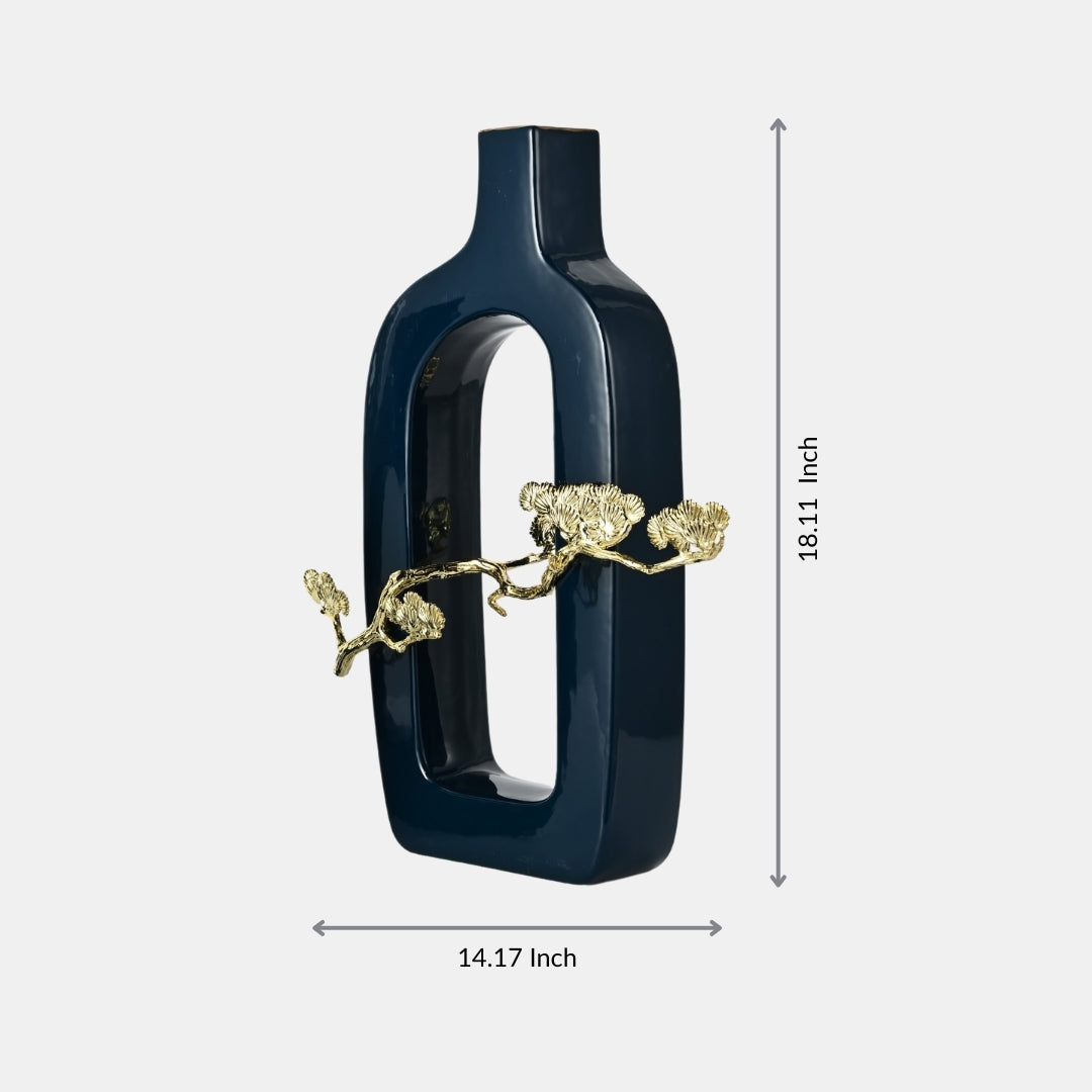 The Midnight Blue Artisanal Vase with Golden Bridging Stems is a true masterpiece that harmonizes the richness of midnight blue with the opulence of gold. This vase stands as a testament to the artistry of skilled craftsmen. The golden bridging stems create a visual spectacle, making it a work of art that draws attention from every angle. Crafted from premium glass, it exudes luxury and sophistication. Whether it graces your dining table, entryway, or as a centerpiece, this vase will elevate your decor to new heights.