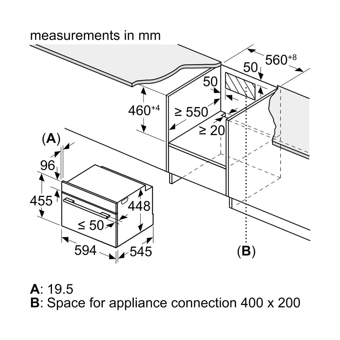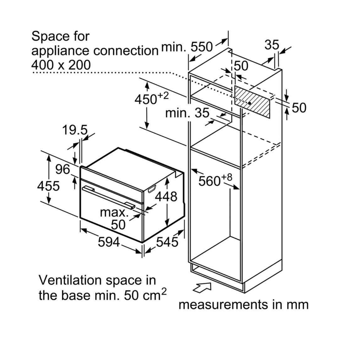 To fit a built-in appliance, please provide the cabinet/cutout cutting dimensions to your kitchen manufacturer. The cutting dimensions for each model are mentioned as carcass dimensions or cutout dimensions in the description table of that model. Please ensure that the back of the carcass (cabinet) is left open for ventilation, or air slits are created for ventilation. If there is no ventilation in the carcass (cabinet), the product may fail, and the warranty will be null and void. Please note that you must provide an electrical point as per the specifications in the product manual for operating the built-in appliance. Preferably, this point should be behind the built-in appliance.