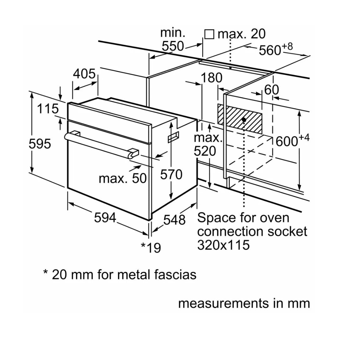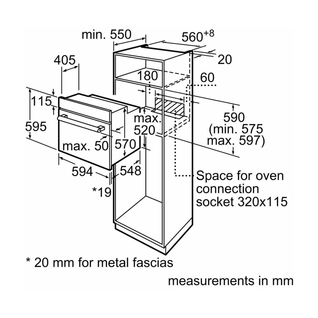 - Cut-out dimensions (HxWxD): 575-597 x 560-568 x 550 mm