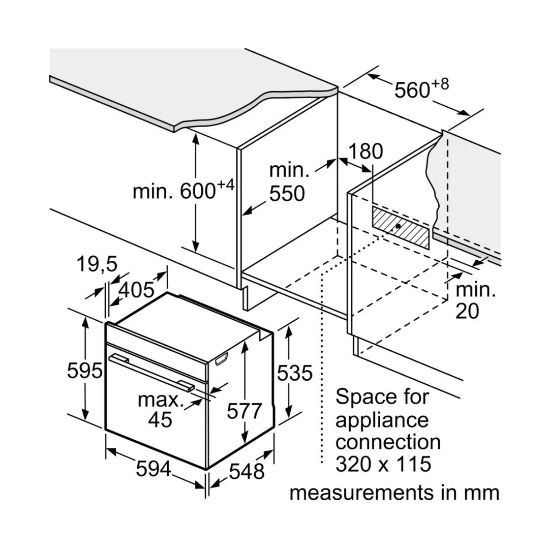 - Cut-out dimensions (HxWxD): 585-595 x 560-568 x 550 mm