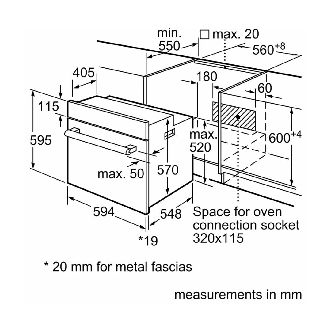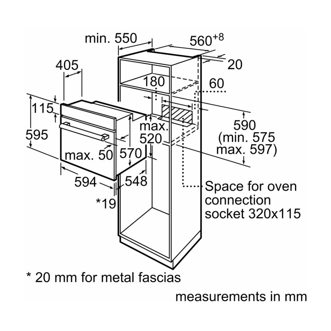 - Cut-out dimensions (HxWxD): 585-595 x 560-568 x 550 mm