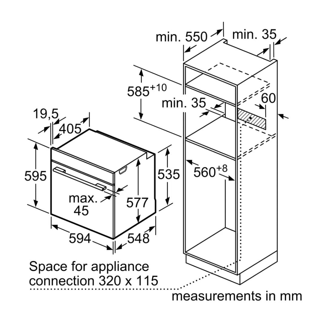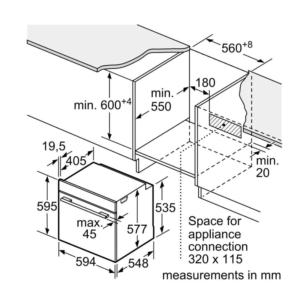 - Cut-out dimensions (HxWxD): 585-595 x 560-568 x 550 mm