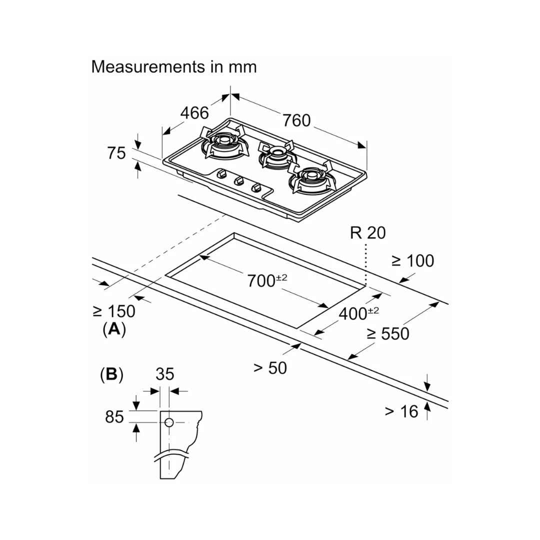 To fit a built-in appliance, please provide the cabinet/cutout cutting dimensions to your kitchen manufacturer. The cutting dimensions for each model are mentioned as carcass dimensions or cutout dimensions in the description table of that model. Please ensure that the back of the carcass (cabinet) is left open for ventilation, or air slits are created for ventilation. If there is no ventilation in the carcass (cabinet), the product may fail, and the warranty will be null and void. Please note that you must provide an electrical point as per the specifications in the product manual for operating the built-in appliance. Preferably, this point should be behind the built-in appliance.