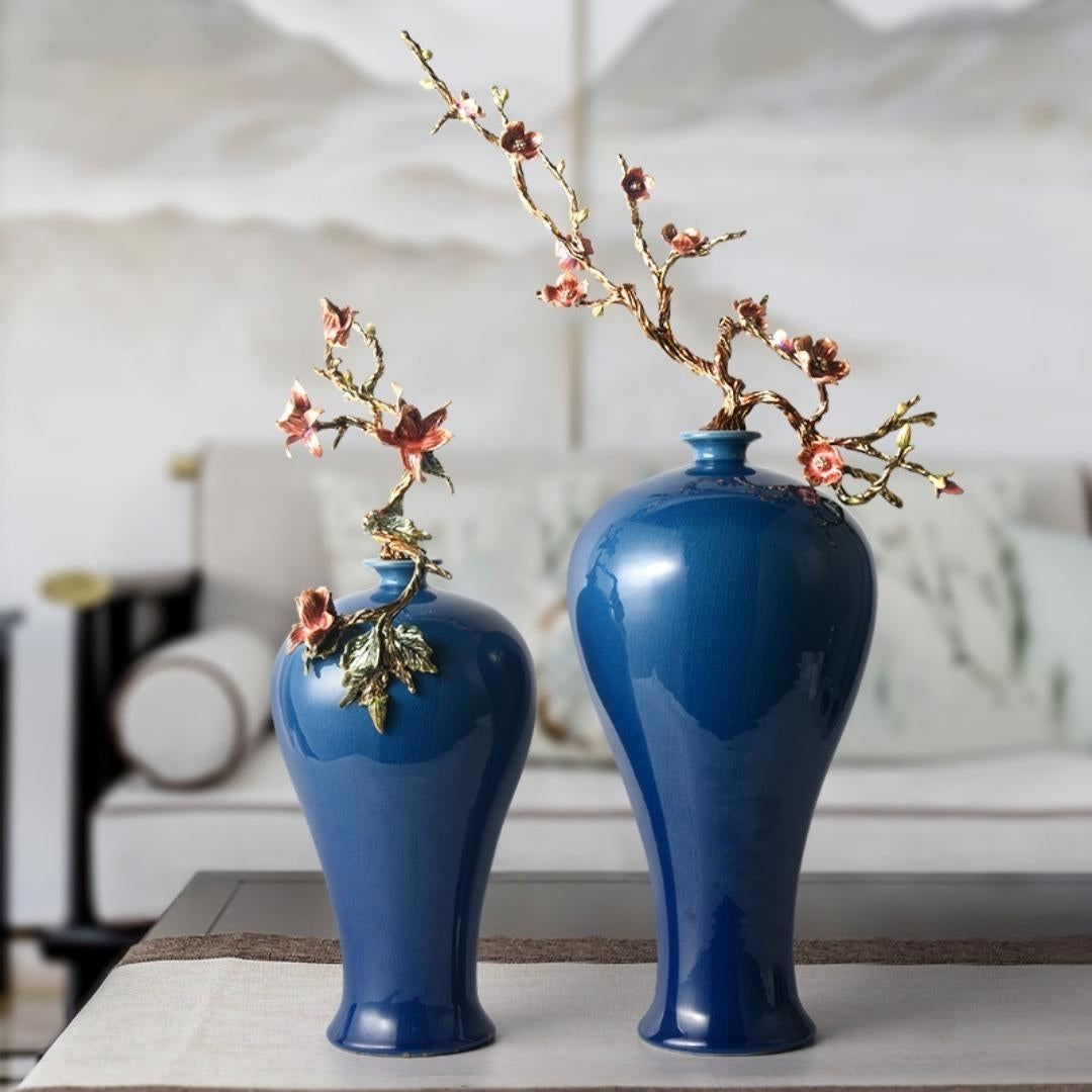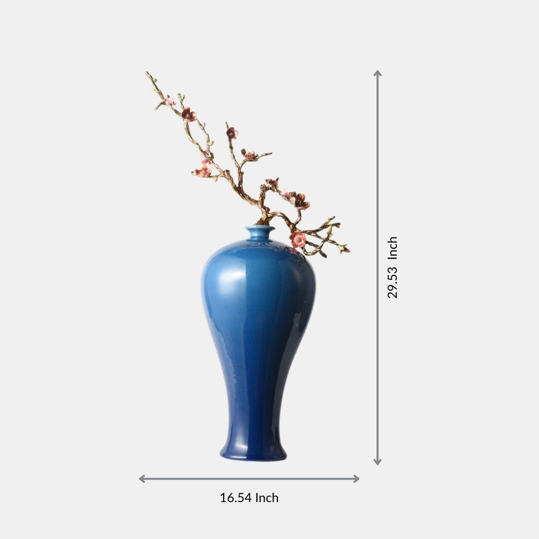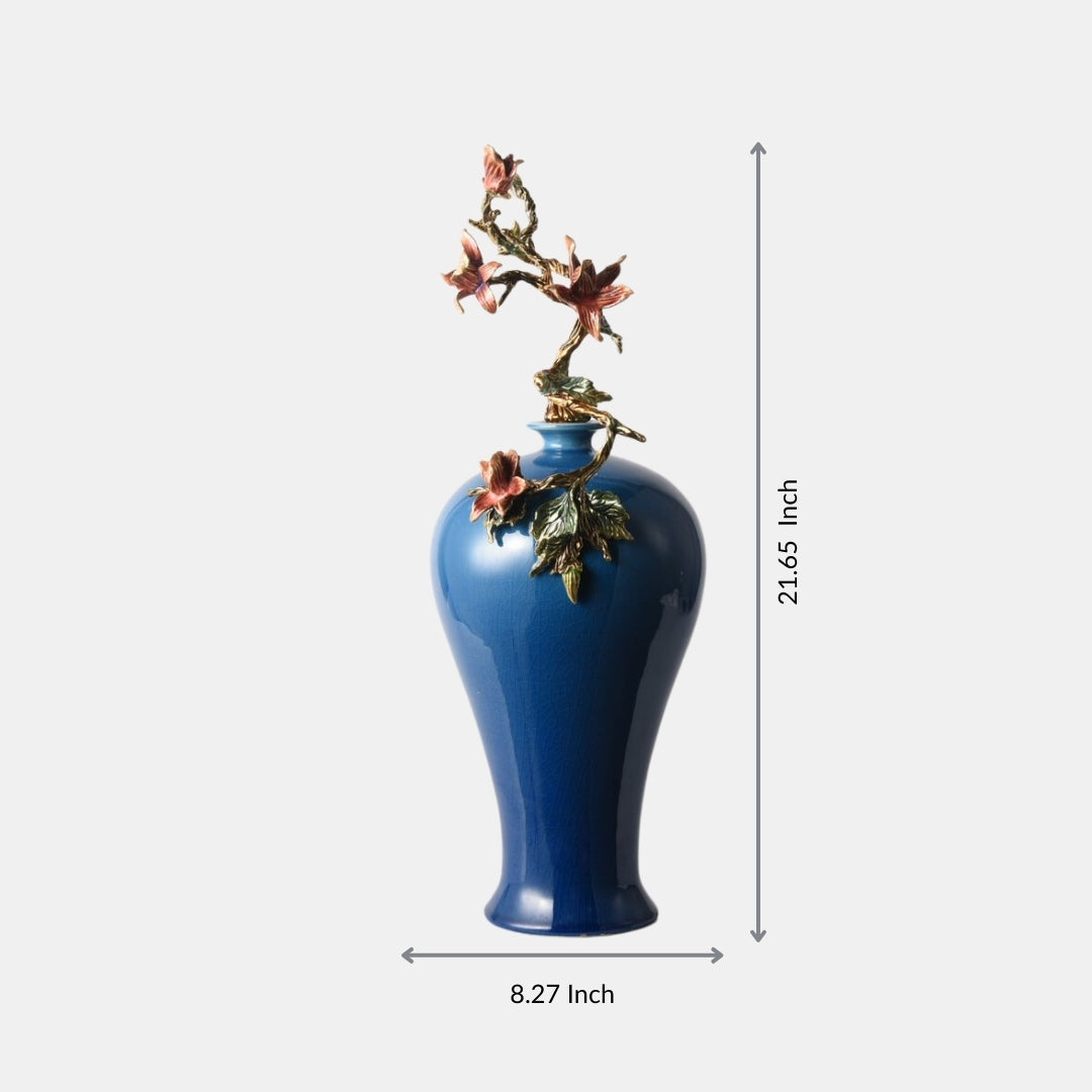 Elevate your luxury displays with the Elongated Decorative Blue Vase adorned with a Floral Accent. Crafted with exquisite attention to detail, this vase showcases a unique blend of elegance and artistry. Its elongated design and rich blue hue make it a focal point in any room. The delicate floral accent adds a touch of grace and charm. Place it in your living room, dining area, or entryway to create a sense of opulence and sophistication. It's a true masterpiece that transforms your decor into a work of art.