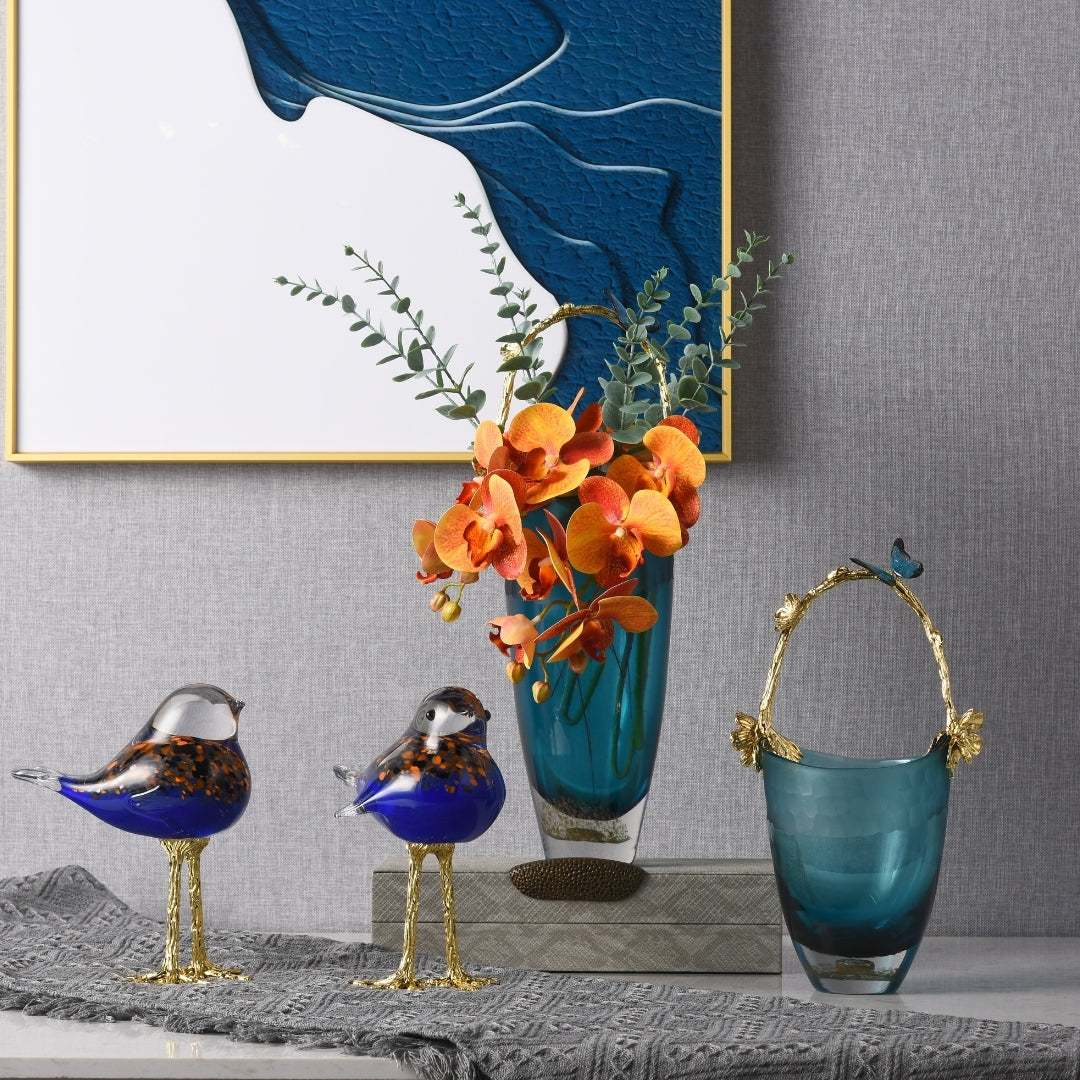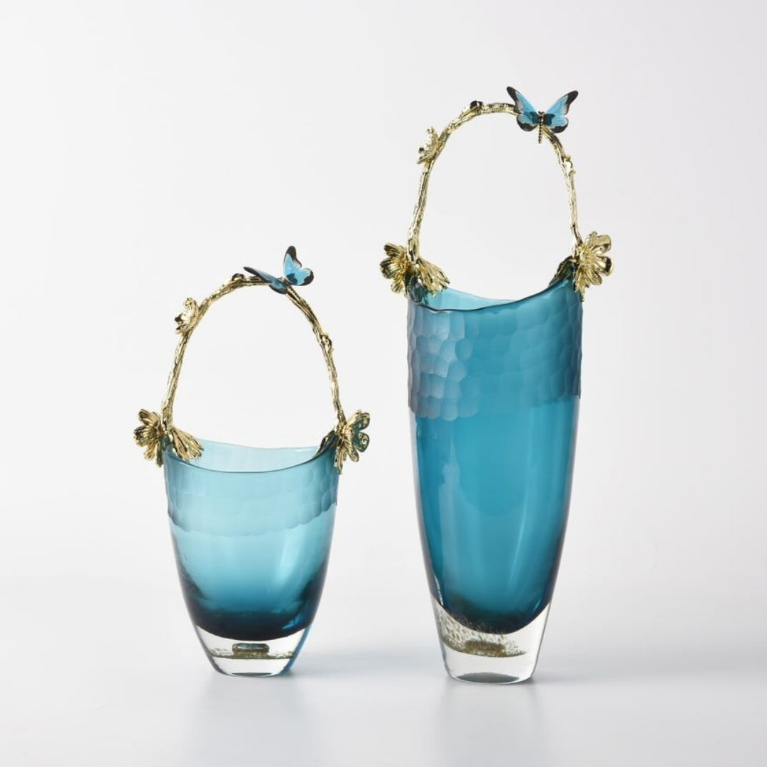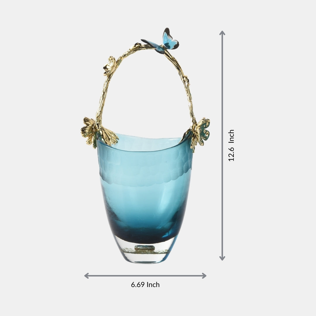 The bucket-shaped elegant glass vase, complete with a golden handle, is a fusion of practicality and opulent detailing. Crafted with precision, this glass vase features a unique shape that adds a touch of artistic elegance to your decor. The golden handle provides a sense of regal charm and sophistication. Whether used for displaying flowers or as a decorative piece, it becomes a symbol of both functionality and luxurious beauty. With this vase, you're not just decorating; you're showcasing your appreciation for refined design and opulence.