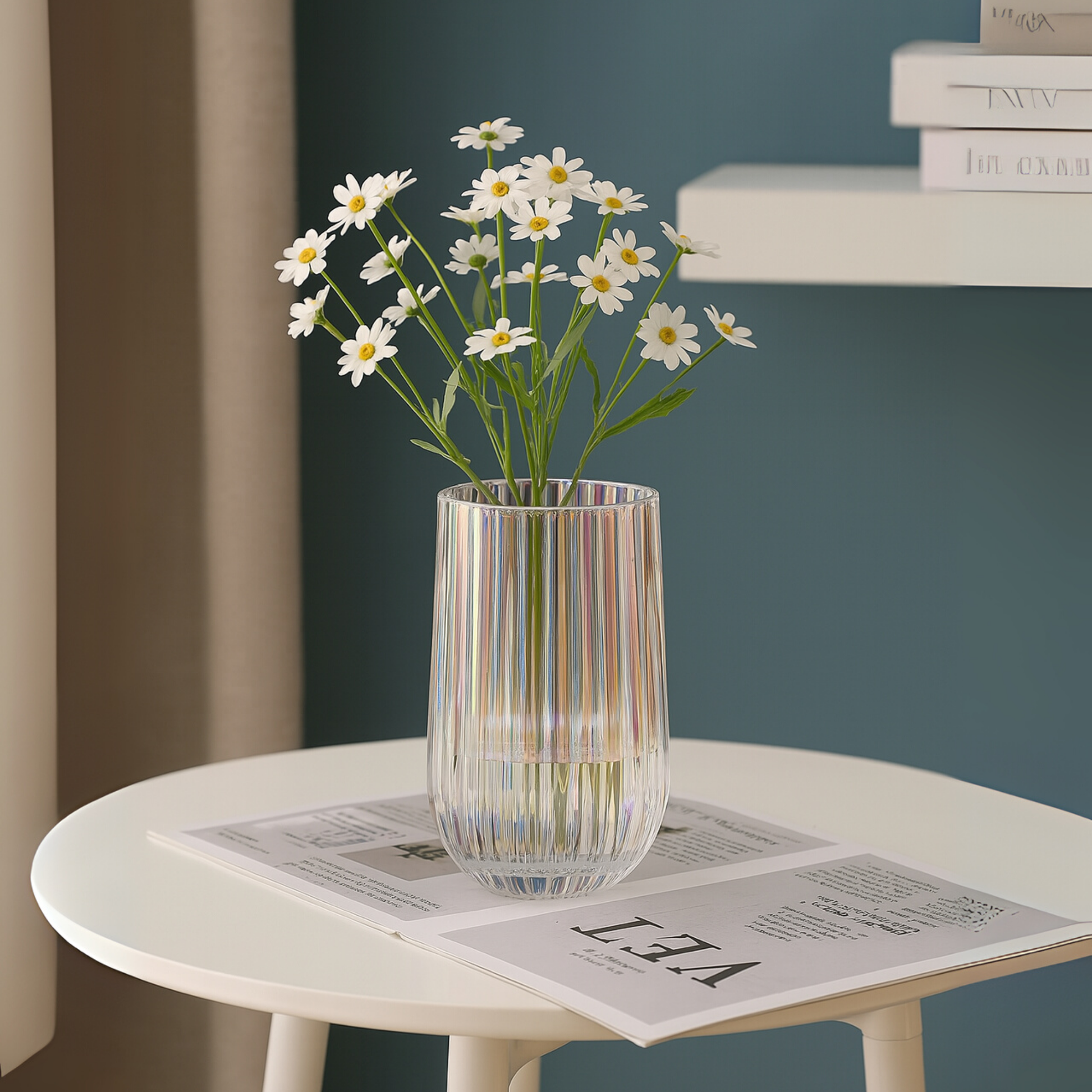 Retro Shine, Radiant Color - The Carnival Glass Glass Vase features iridescent, shifting colors that change with the light—from amber to violet to teal. A nostalgic yet modern piece for vibrant styling.