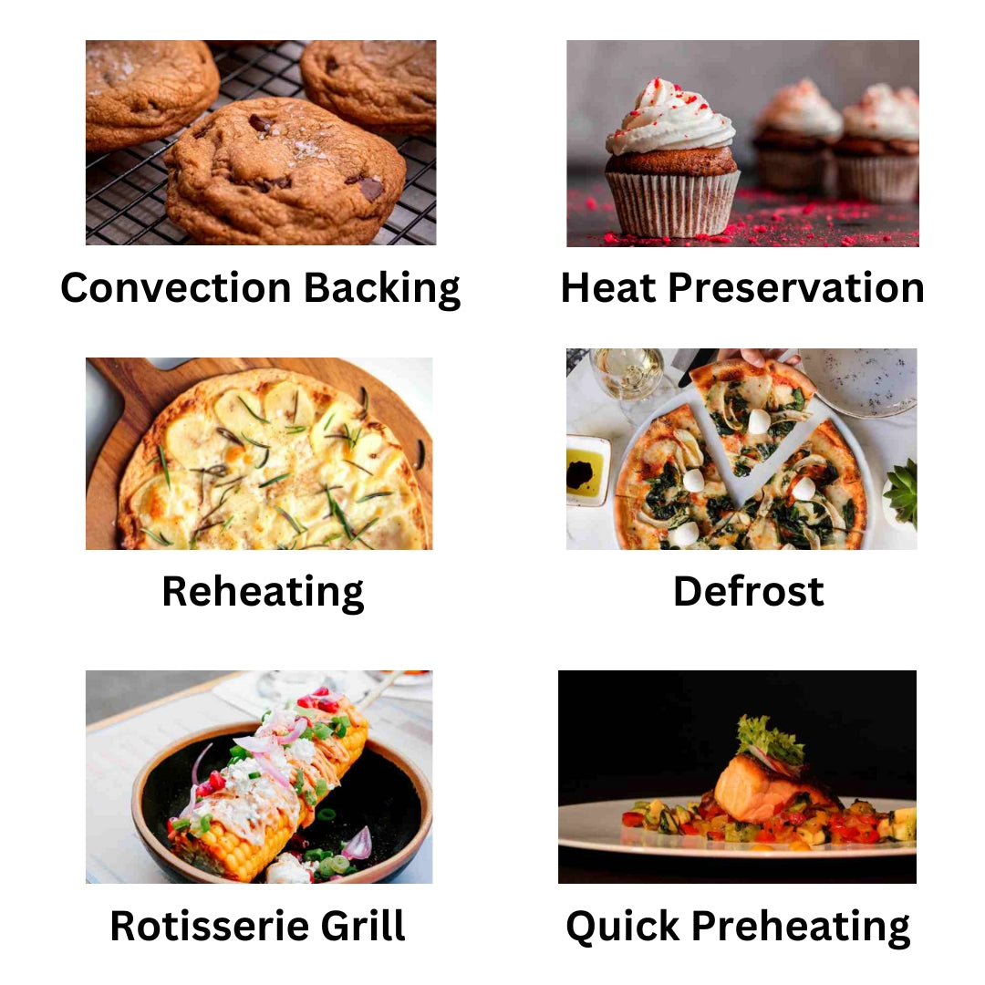 - Included Accessories : 1 x Combination Grid, 1 x Enamel Baking Tray, Rotisserie