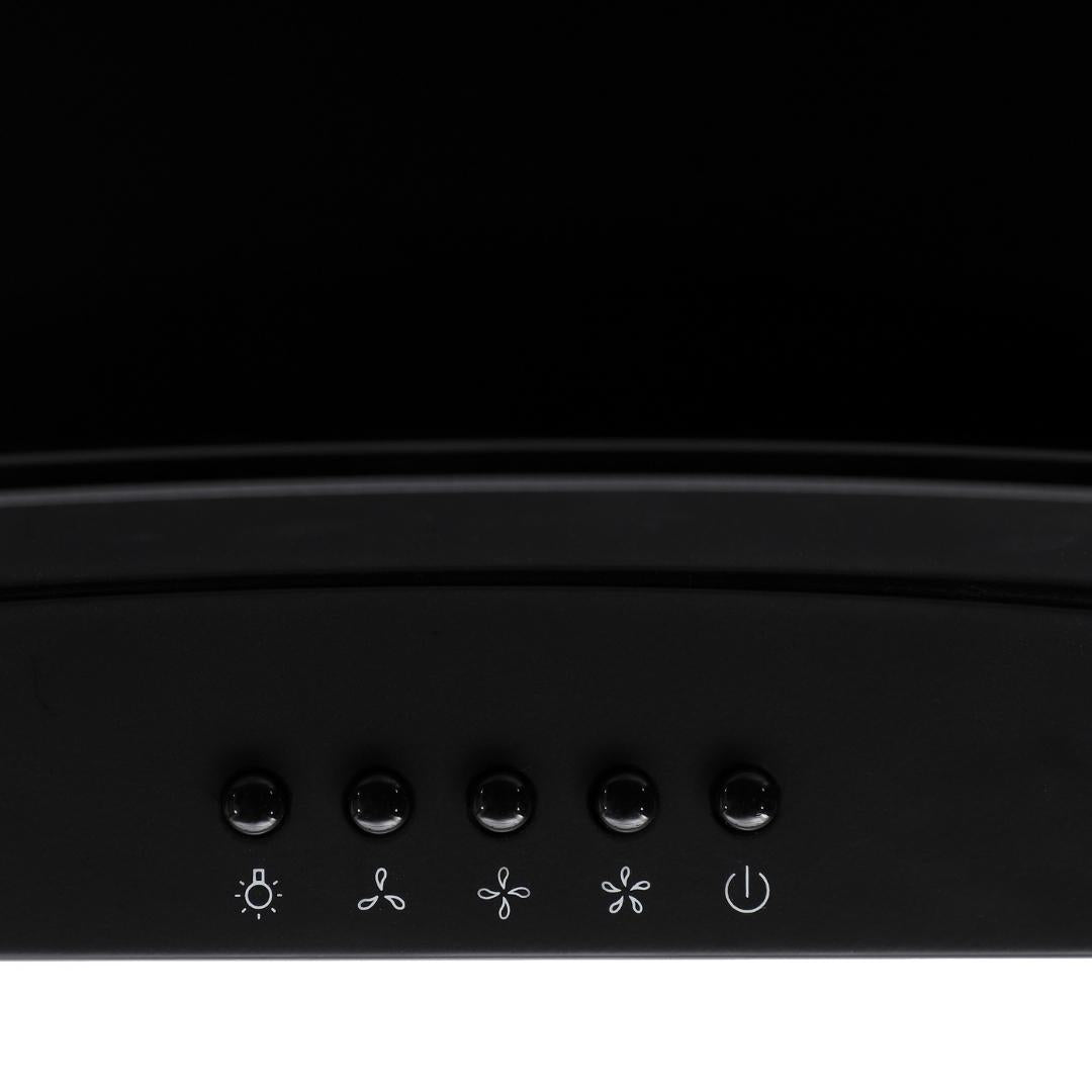 - Elegant Curved Glass Chimney. Available in Black color. Non-choking Baffle Filter for Easy Cleaning. Push Button Control