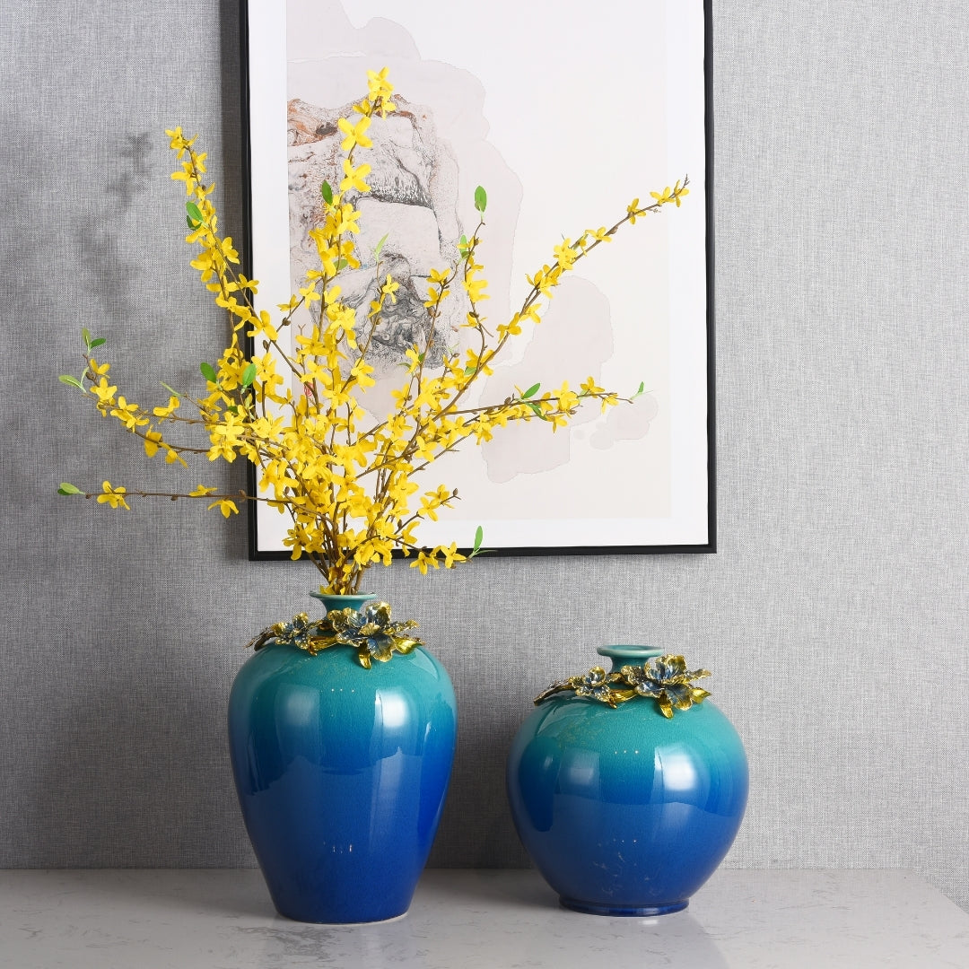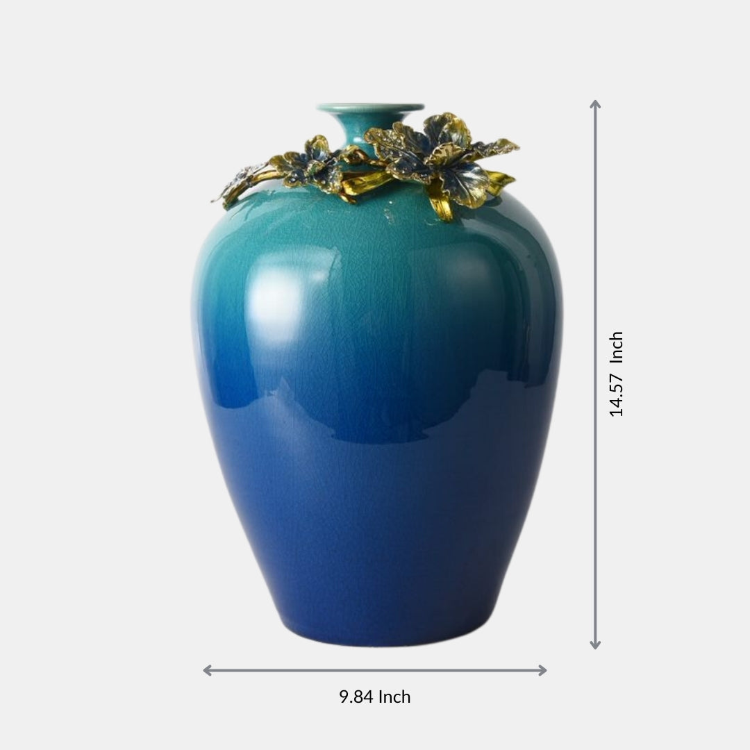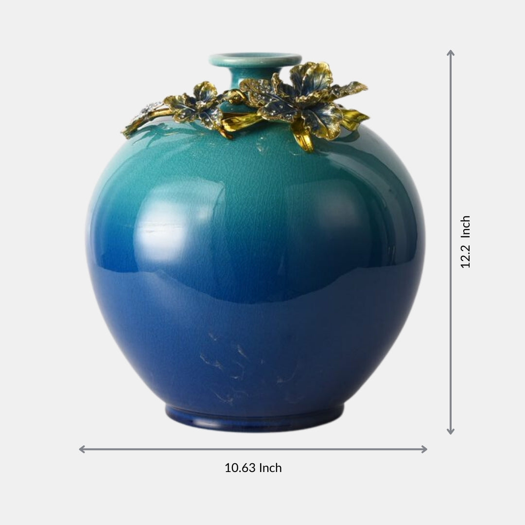 The Ocean and Aqua Blue Luxe Vase with Floral Bloom brings the tranquility of ocean waves and the vibrancy of florals into your living space. Crafted with precision, this vase is a testament to the fusion of nature-inspired design and artistic flair. The ocean and aqua blue hues create a sense of serenity, while the intricate floral bloom adds a touch of vivacity. Place it on your coffee table or as a centerpiece to invite the beauty of the sea and the charm of blossoms into your decor. It's a captivating piece of artistry.