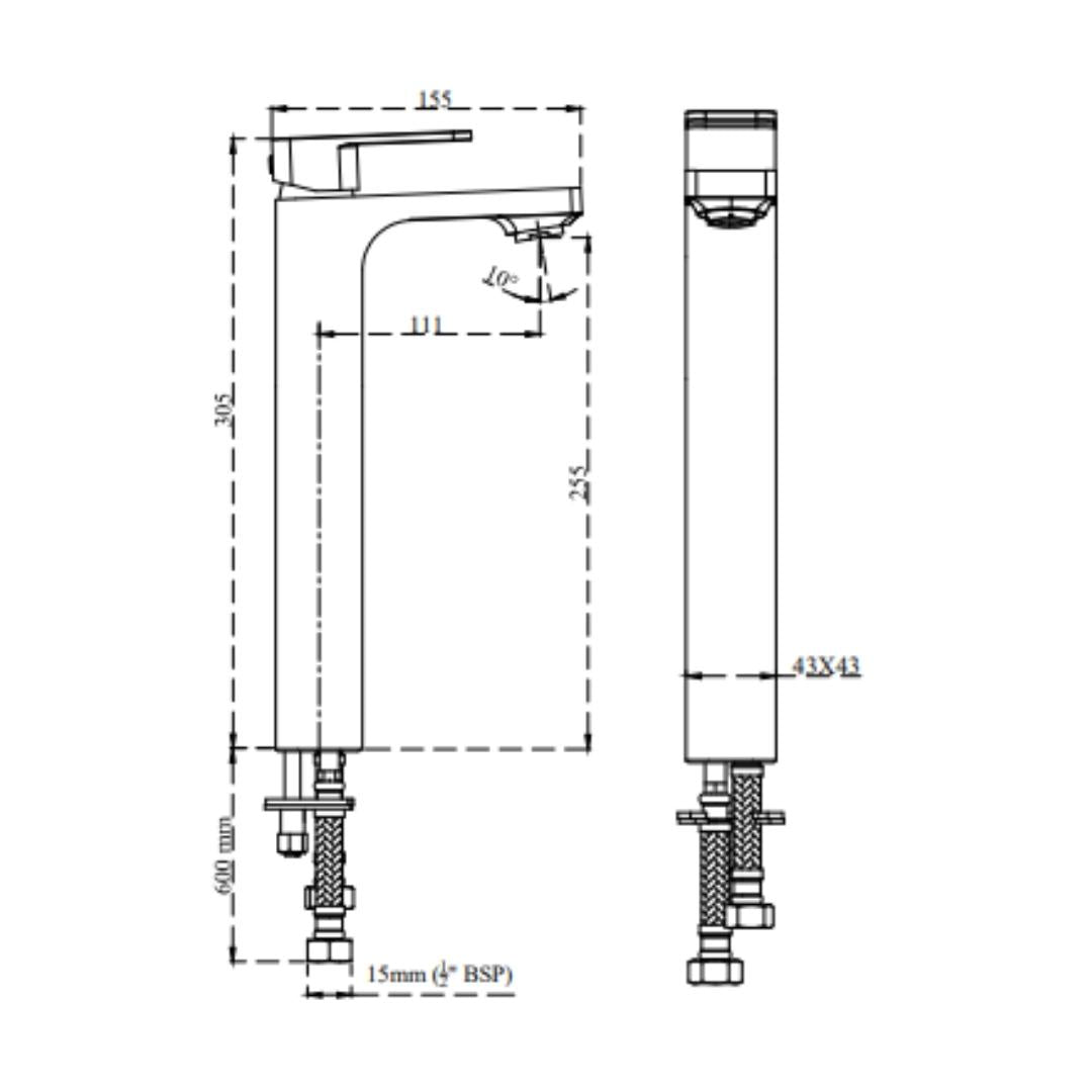 Cera Table Mounted Tall Boy Basin Mixer Ruby F1005452FG - French Gold