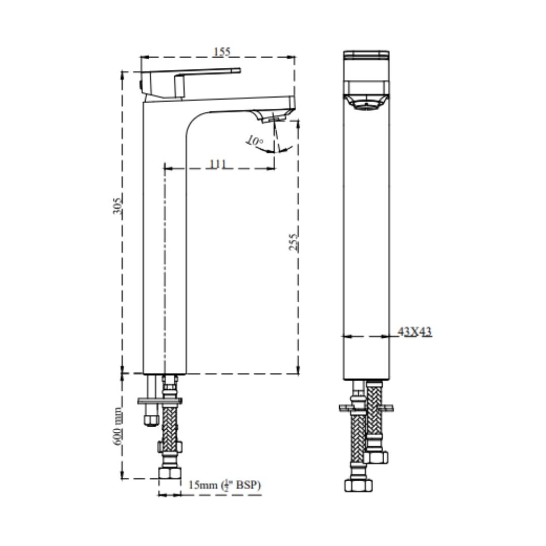 Cera Table Mounted Tall Boy Basin Mixer Chelsea F1016452RG - Rose Gold