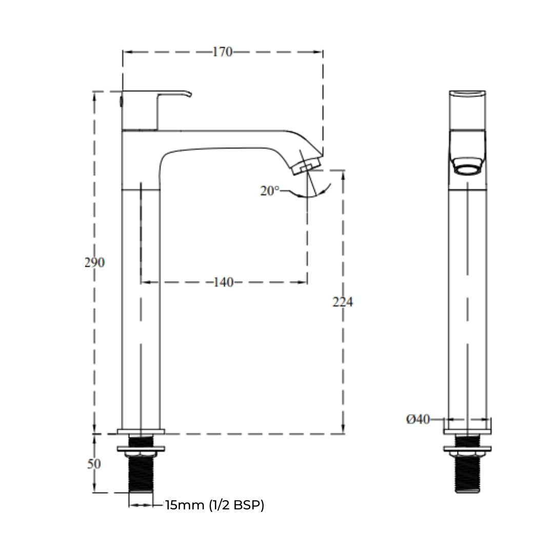 Cera Table Mounted Tall Boy Basin Tap Chelsea F1016102 - Chrome