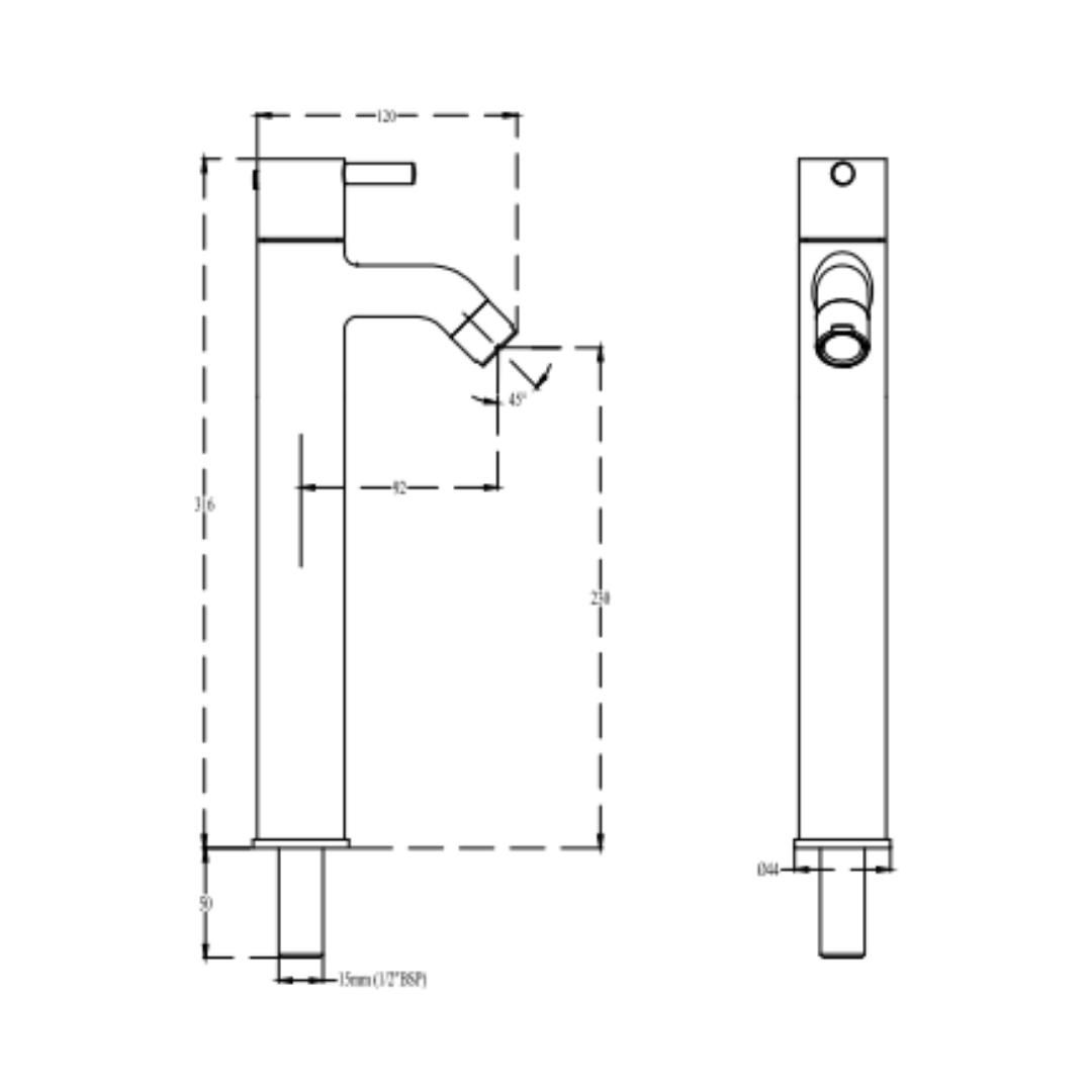 Cera Table Mounted Tall Boy Basin Tap Titanium F1003102 - Chrome
