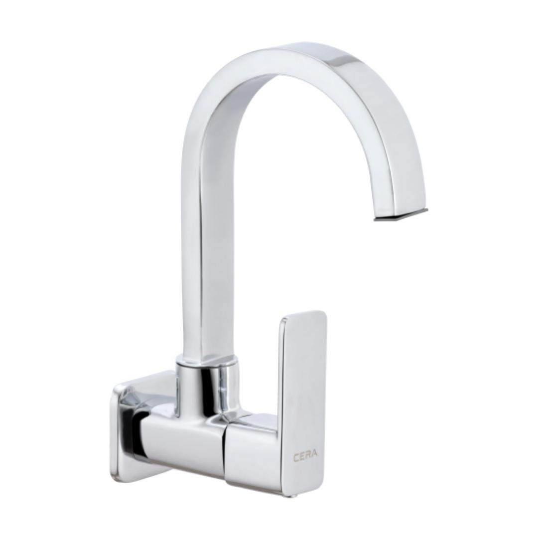 Cera Wall Mounted Regular Kitchen Sink Tap Ruby F1005251 with Swinging Spout in Chrome Finish