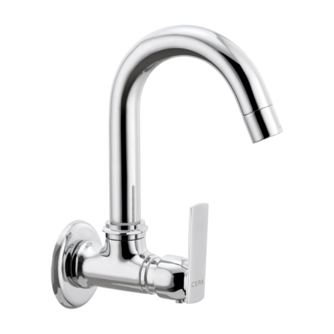 Cera Wall Mounted Regular Kitchen Sink Tap Titanium F1003251 with Swinging Spout in Chrome Finish