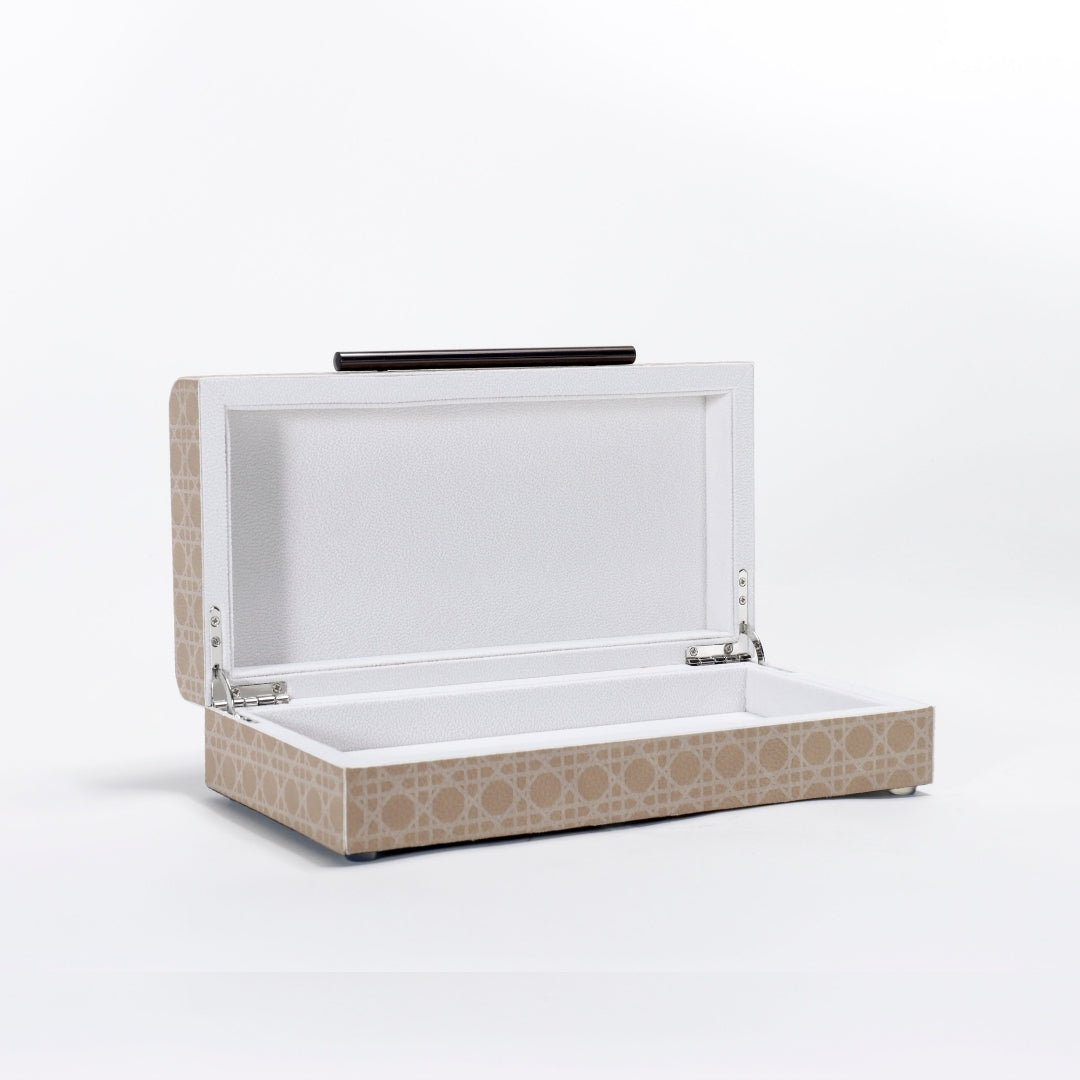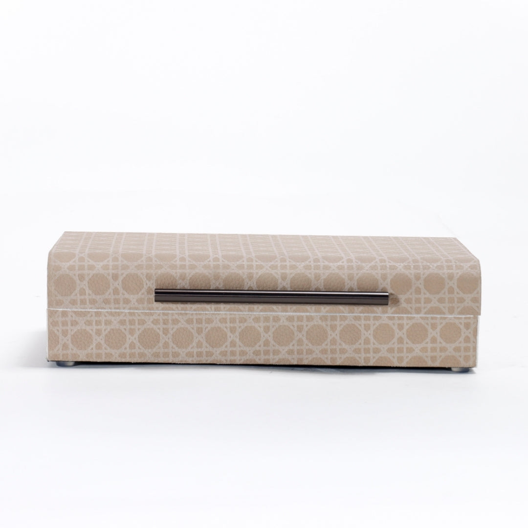 Embrace chic organization with our Chic Storage Companion: Small Beige Leather Storage Box with Handle. Crafted with care from premium PU leather, sturdy MDF, and sleek alloy accents, this storage box is a fusion of style and functionality. Its compact size and convenient handle make it a versatile companion for your organizational needs. Store your essentials in elegance and elevate your decor with this sophisticated storage solution. Experience the perfect blend of fashion and function as you declutter your space with this stylish storage box.