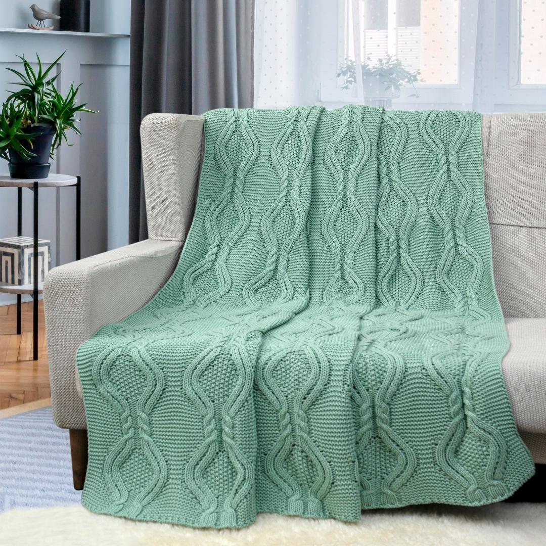 Limited Time DealChunky Classic Light Green Cotton Knitted Throw Blanket (50 in x 66 in)