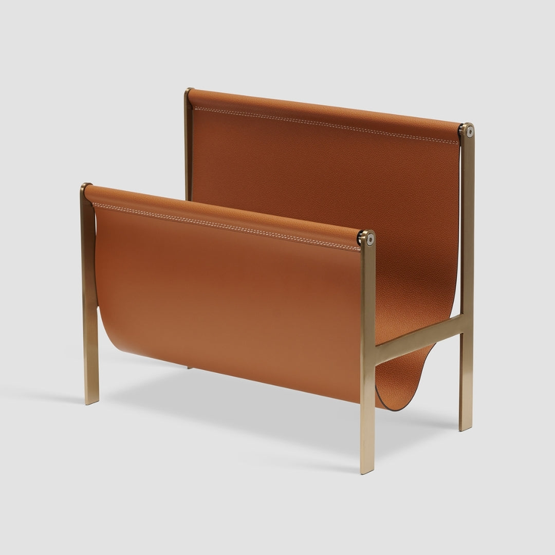 Classic Collection Bronze Leather & Stainless Steel Magazine Holder