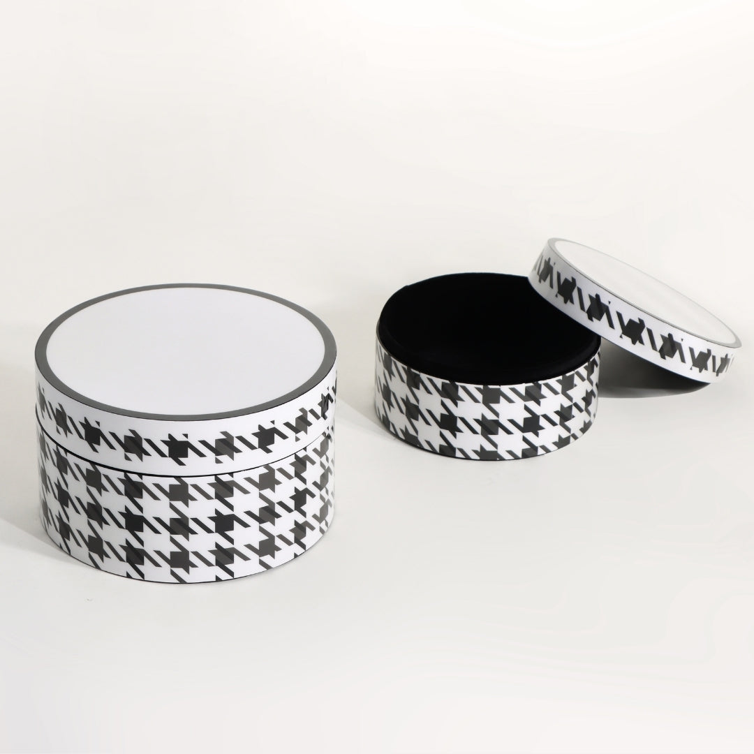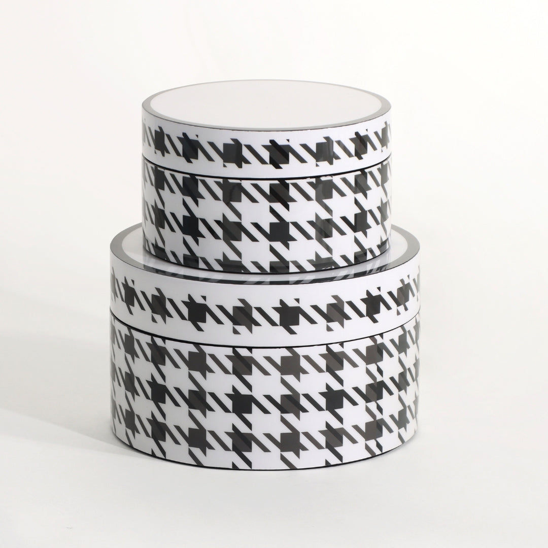 Experience timeless elegance with our Classic Houndstooth Pattern Round Boxes. These circular storage boxes feature the iconic black and white houndstooth design, making them a symbol of enduring style. Crafted with meticulous attention to detail, they provide a stylish solution for organizing while adding a touch of classic flair to your decor. Transform your living space into a sophisticated haven of style and practicality with this set of round storage boxes.