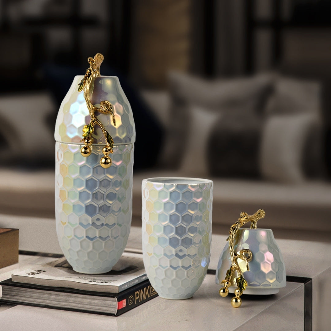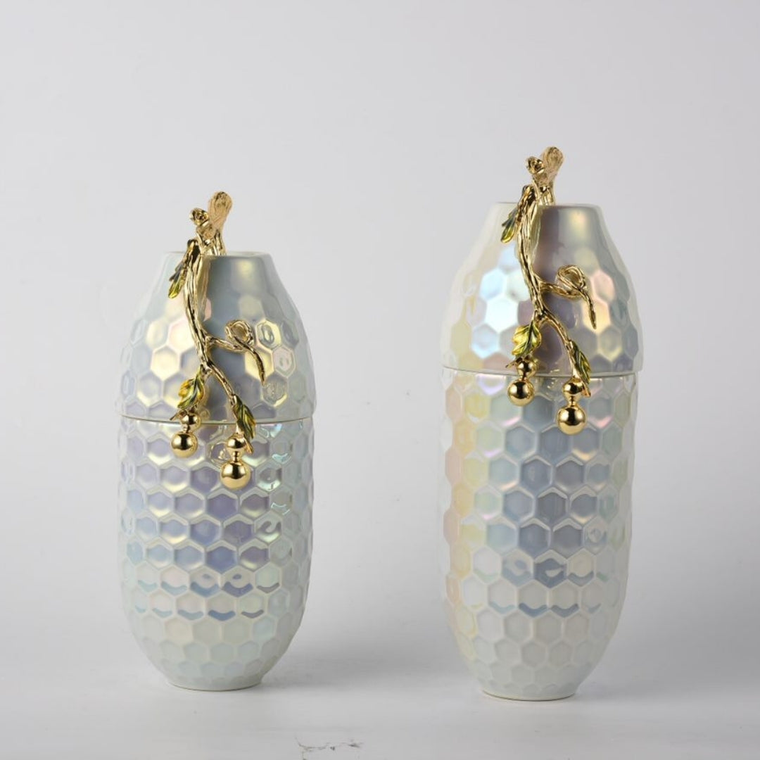 These decorative elongated ceramic storage boxes, adorned with gold enamel beauty, are a fusion of practicality and artistic opulence. Crafted with precision, they offer versatile storage solutions while adding a touch of regal elegance to your space. The gold enamel detailing provides a sense of opulence and refinement. Whether used to store your treasured items or as decorative accents, they become symbols of both functionality and luxurious design. With these storage boxes, you're not just organizing; you're elevating your decor with a touch of grandeur.