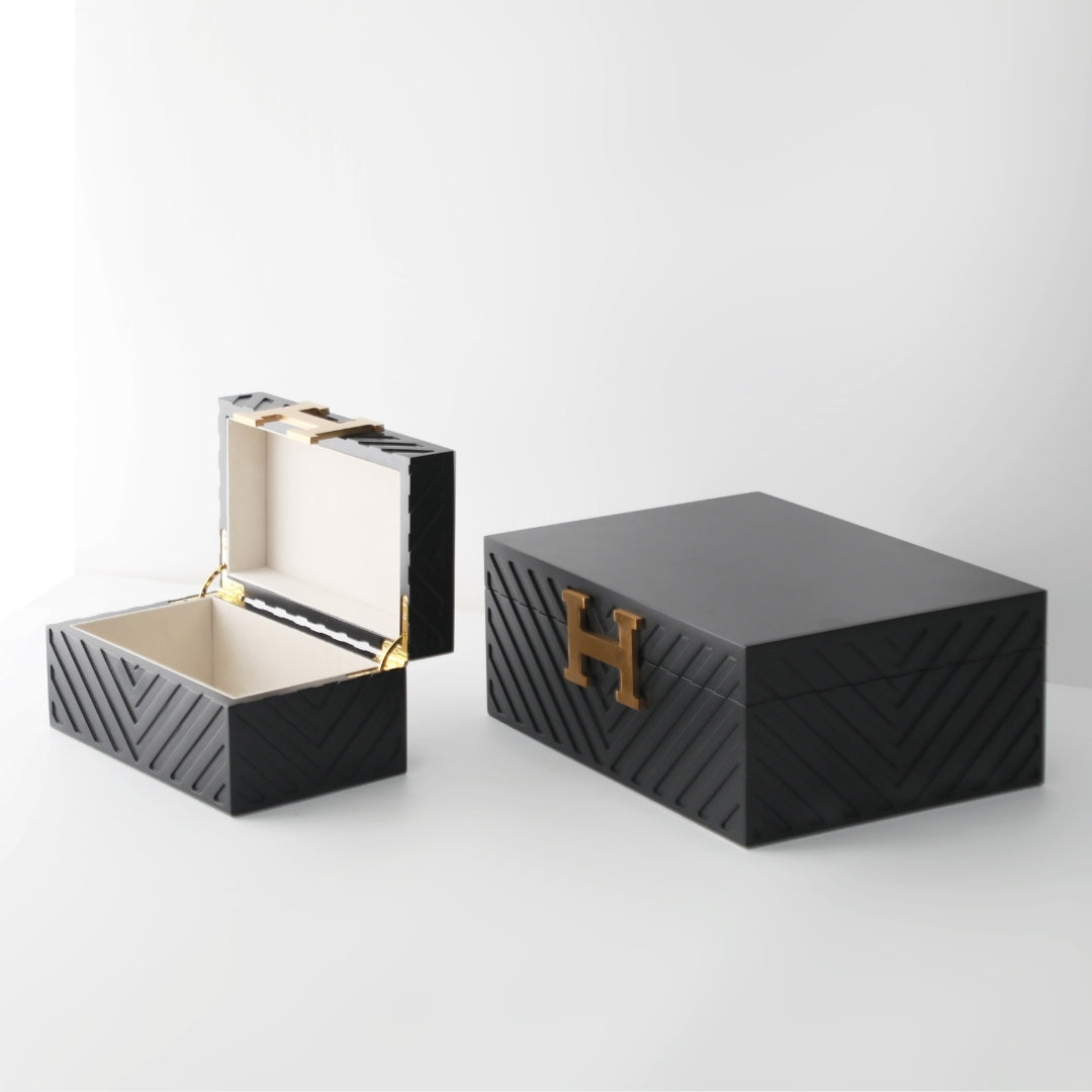 Experience sleek organization with our Sleek Matt Black MDF and Metal Storage Box - Small. Crafted from high-quality MDF and metal, this small storage box boasts a minimalist matt black design that complements various decor styles. Its compact size and sturdy metal accents make it an ideal choice for organizing small items. Elevate your organization game with this sleek storage solution. Immerse yourself in the world of minimalist living.