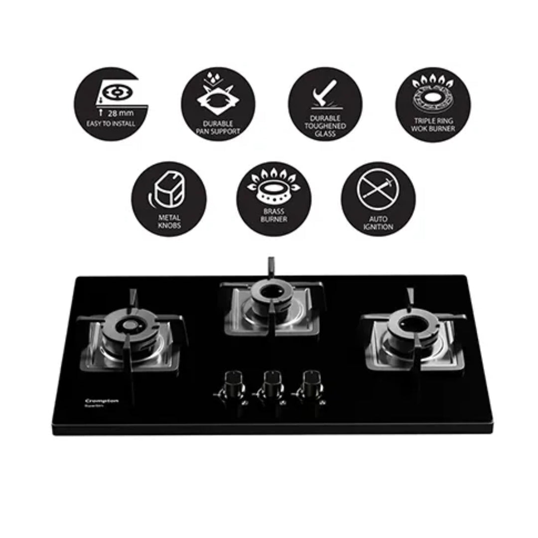 Crompton 78 cm 3 Burner Cooktop Superslim TAB-SUHB783-MBL
