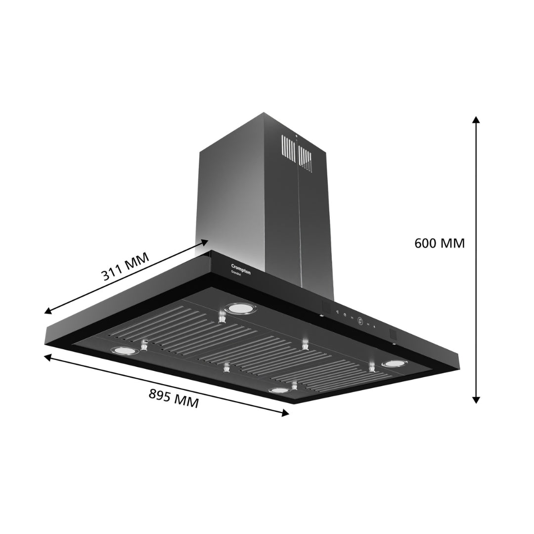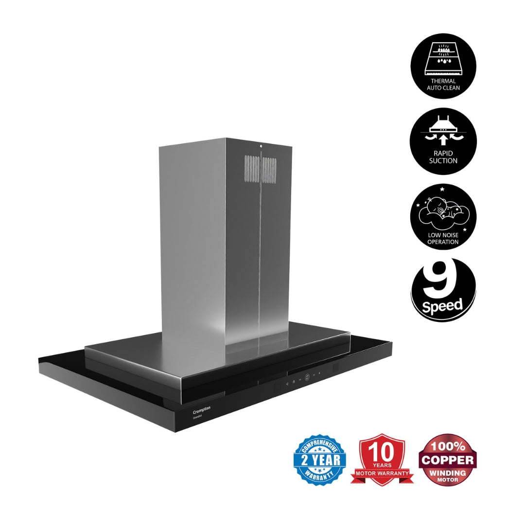 - Elegant style - With the trust of Crompton Engineering accompanied with superior build quality, our chimneys are a sight to behold and a delight to operate. The premium design and minimalistic appearance complement urban Indian kitchen designs. The LED lights in the chimney prevent the chimney from overheating. A large touch panel and an easy-to-use user interface have been built for your convenience.