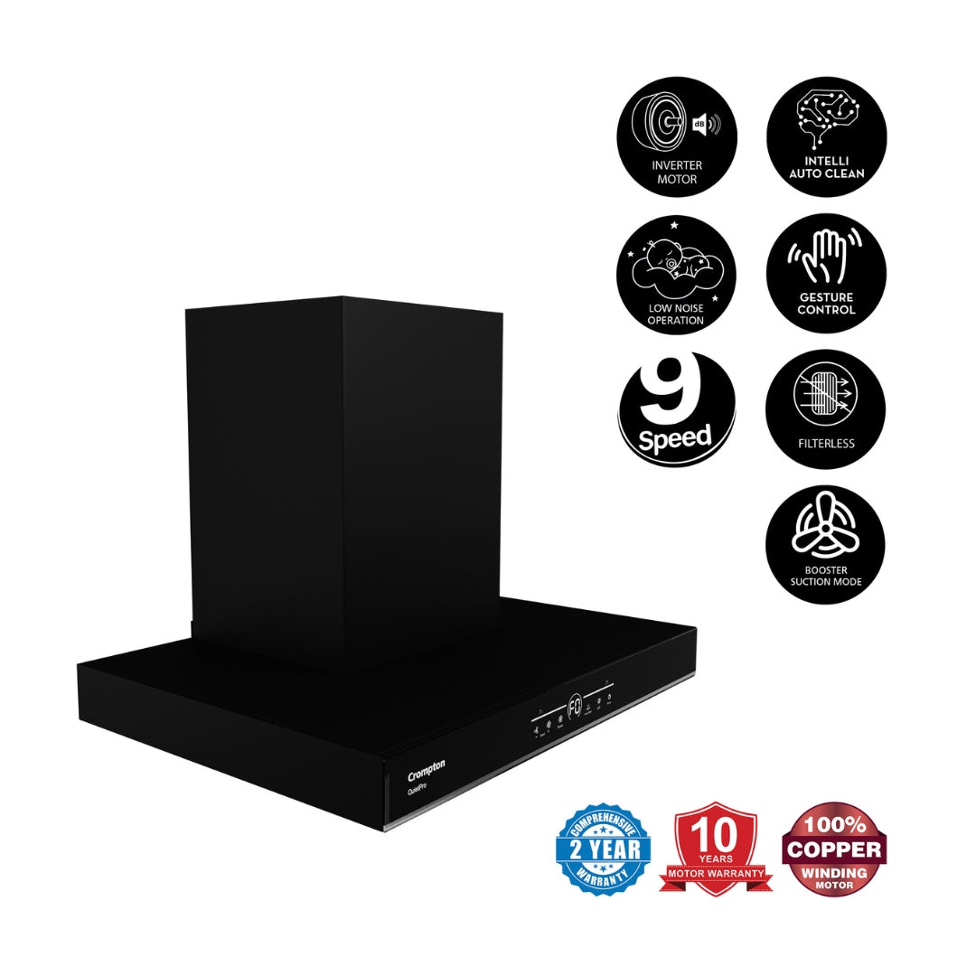 - Gesture Control - Crompton’s specially designed Gesture Control Function senses hand gestures and uses intelligent motion sensors to activate/deactivate specific functions on your chimney, offering you to experience touch-free operation.