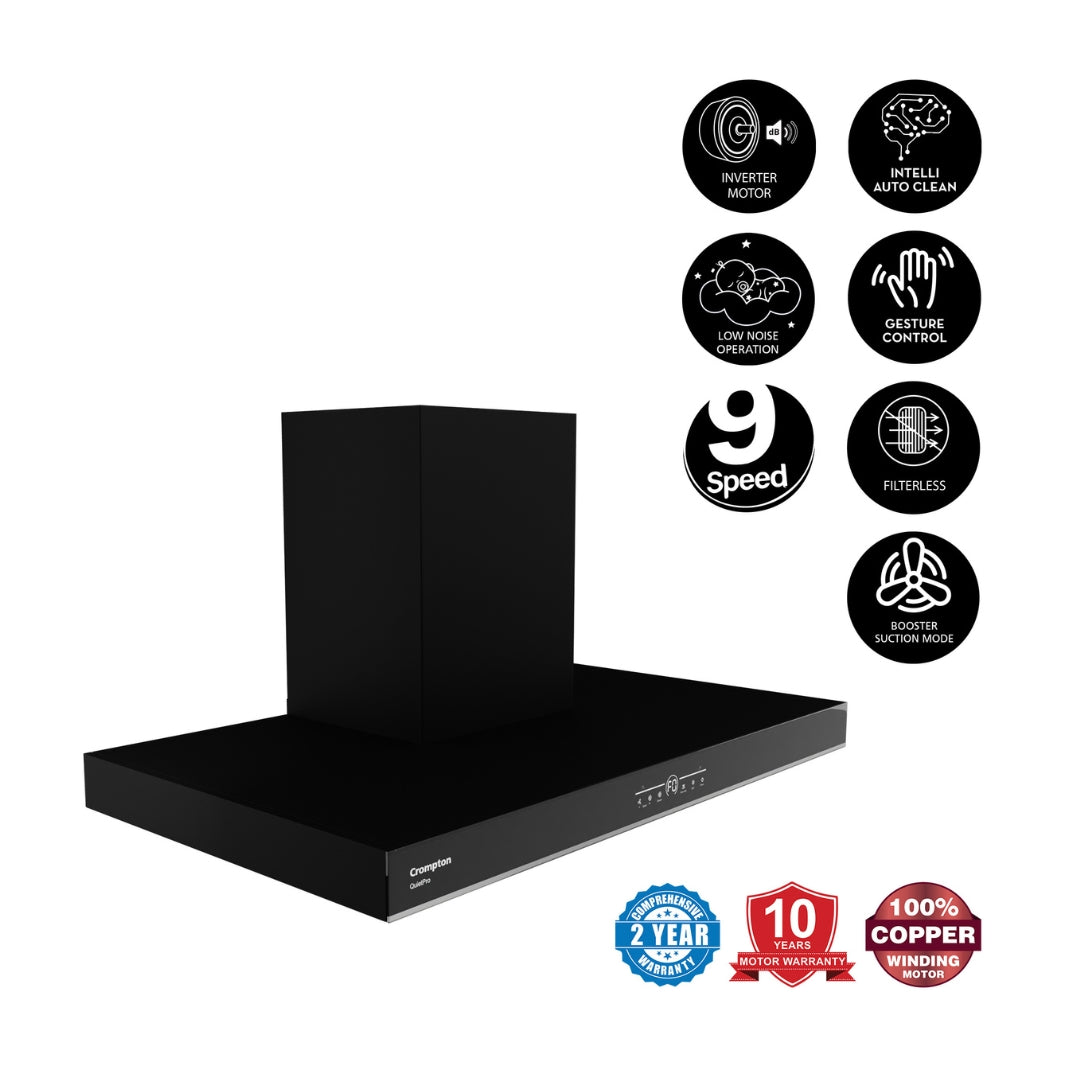 - Gesture Control - Crompton’s specially designed Gesture Control Function senses hand gestures and uses intelligent motion sensors to activate/deactivate specific functions on your chimney, offering you to experience touch-free operation.