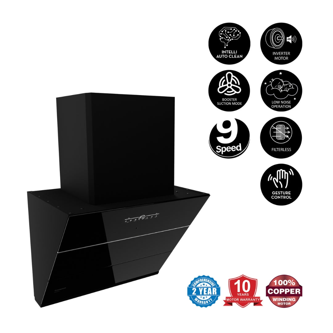 - Filterless Technology - Say No to tedious scrubbing and cleaning of filters, Our modern chimneys incorporate Filterless technology*. Oil and grease released during cooking is gathered in a tray that can be cleaned on a regular basis depending on usage, making chimney maintenance and cleaning a simple and easy process.