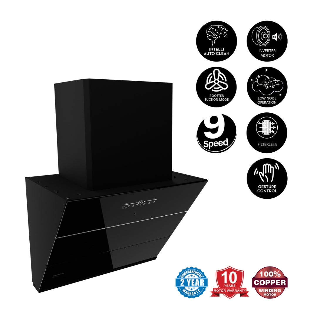 - Filterless Technology - Say No to tedious scrubbing and cleaning of filters, Our modern chimneys incorporate Filterless technology*. Oil and grease released during cooking is gathered in a tray that can be cleaned on a regular basis depending on usage, making chimney maintenance and cleaning a simple and easy process.