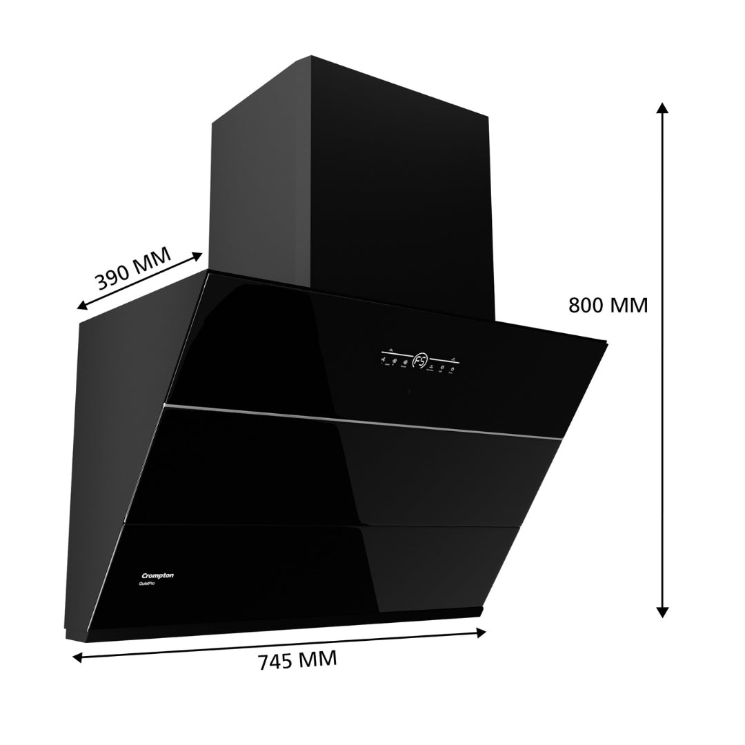 - Elegant style - With the trust of Crompton Engineering accompanied with superior build quality, our chimneys are a sight to behold and a delight to operate. The premium design and minimalistic appearance complement urban Indian kitchen designs. The LED lights in the chimney prevent the chimney from overheating. A large touch panel and an easy-to-use user interface have been built for your convenience.