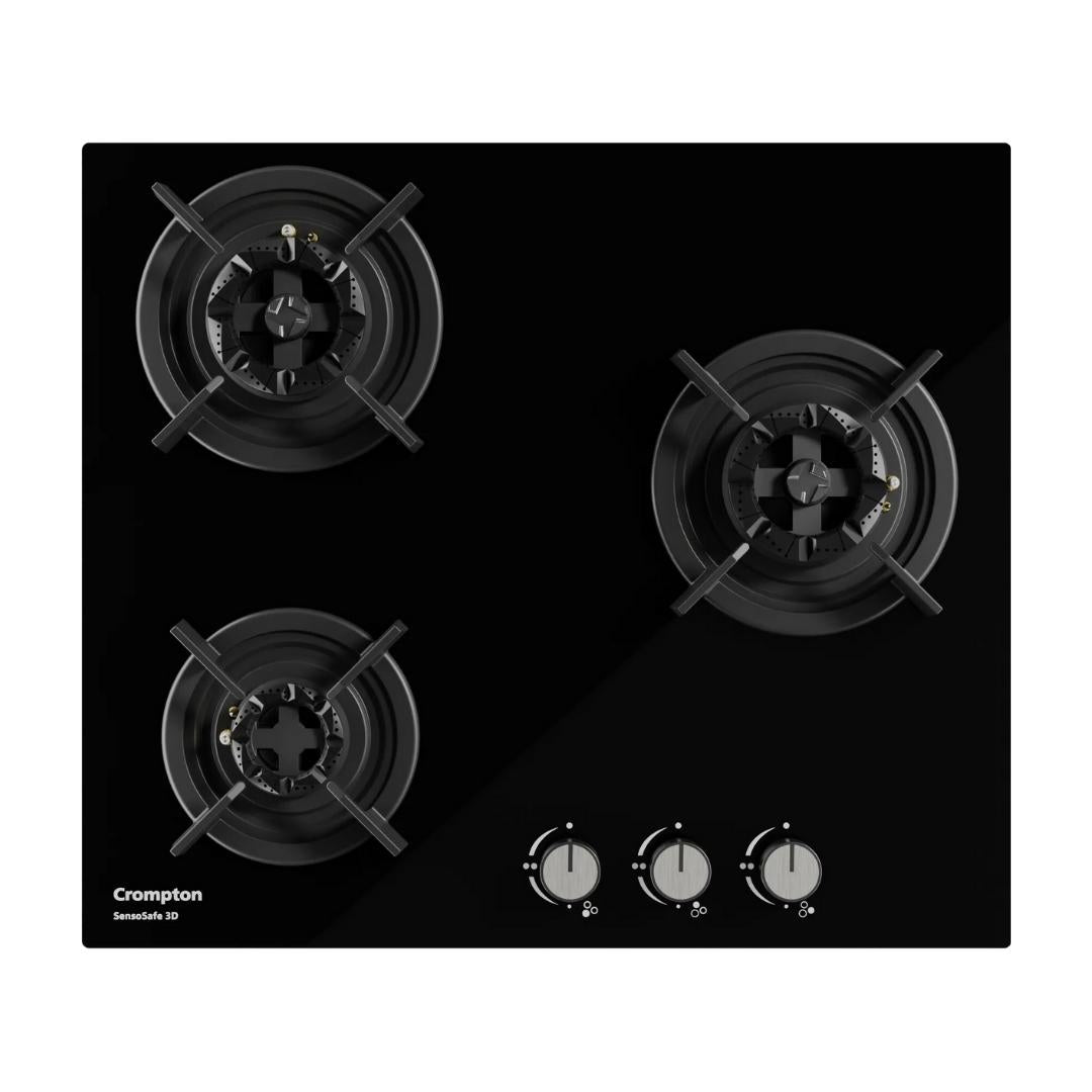 Crompton 60 cm 3 Burner Hob Sensosafe HOB-SS3D603-MBL