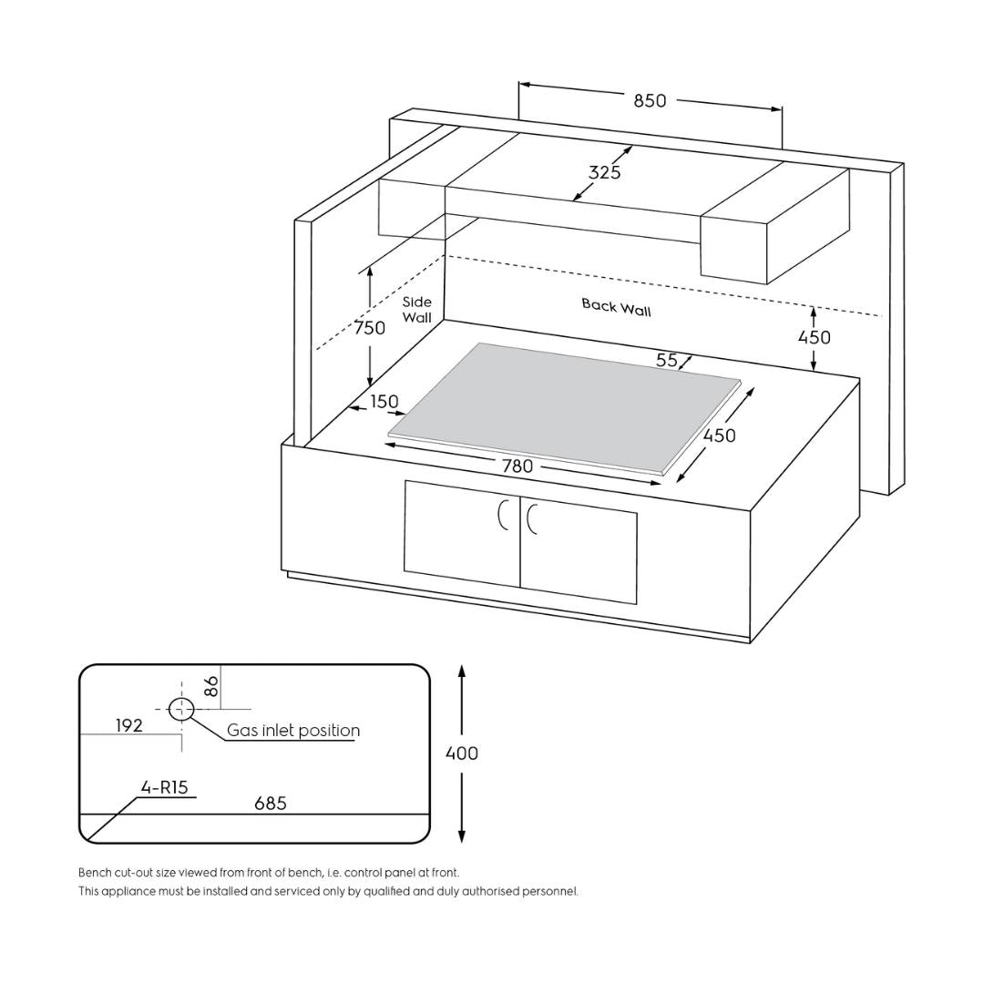 - Cut-out dimensions (mm) : 685 (W) x 400 (D)