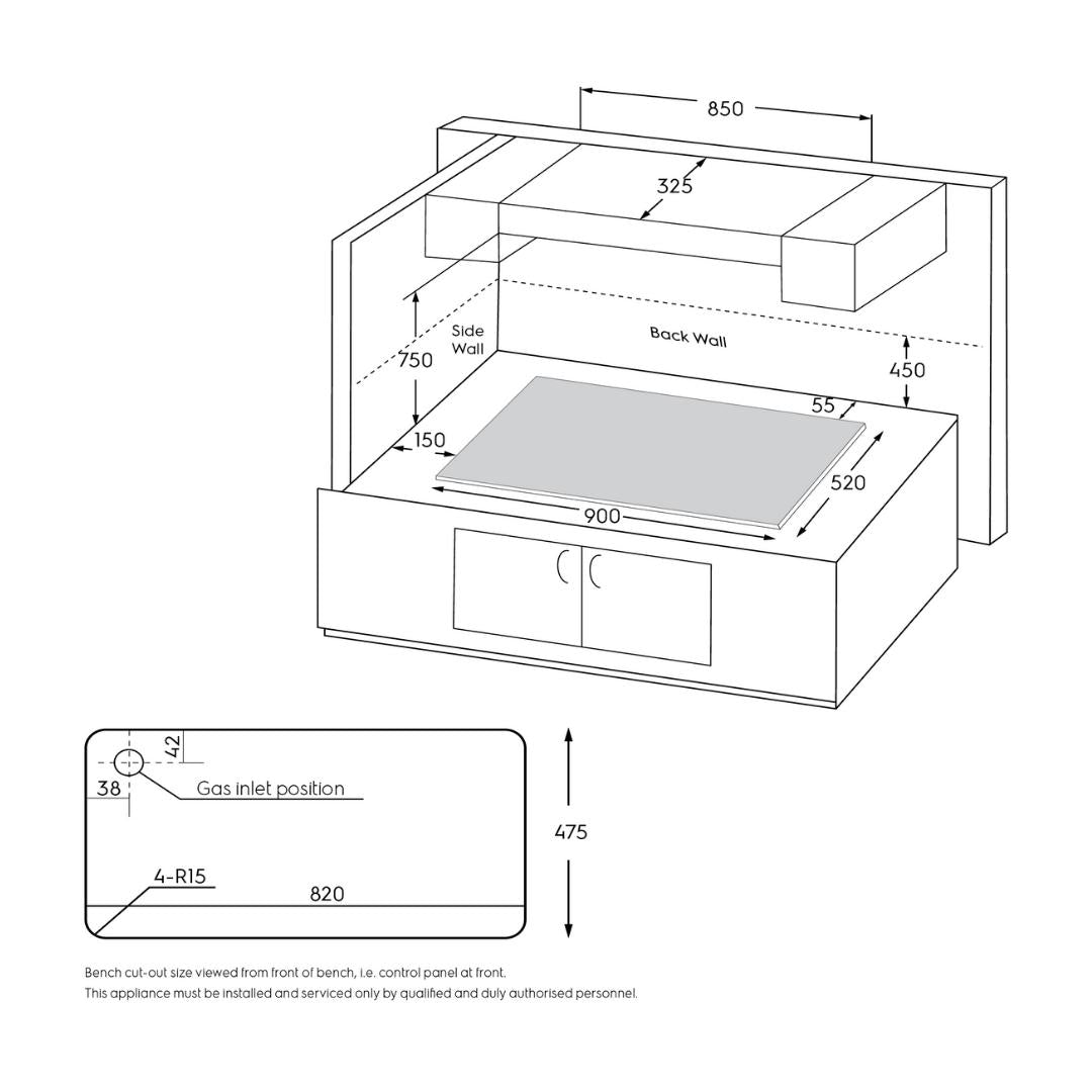 - Cut-out dimensions (mm) : 820 (W) x 475 (D)