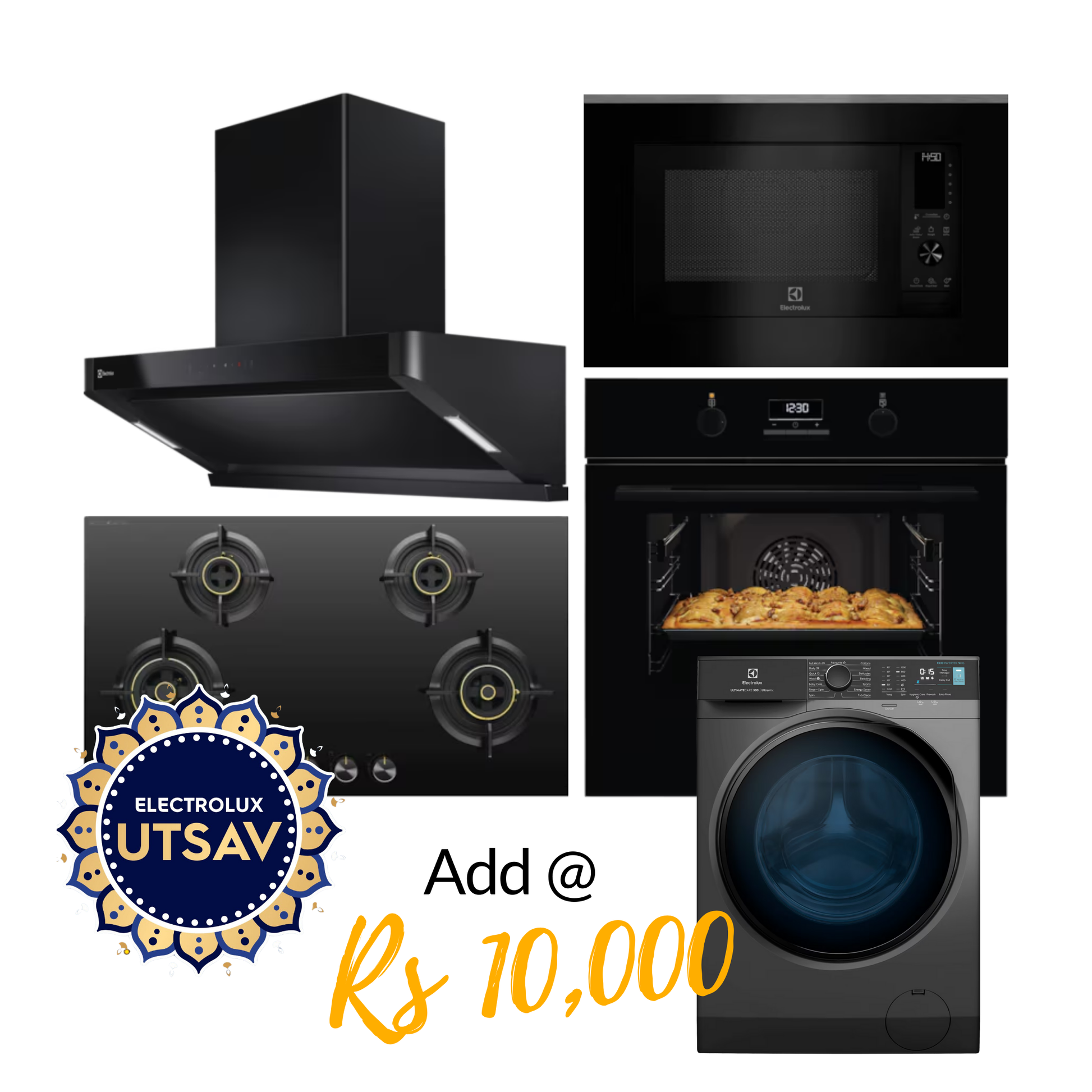ElectroluxElectrolux Oven UltimateTaste 500 KOD3H50BK + Microwave with Air Fryer UltimateTaste 900 EMSB30XCF + Chimney UltimateTaste 700 Series ECS9939KB + Hob UltimateTaste 300 EHG9430BCI with Festive Price Washing MachineRs. 193,480.00 View details