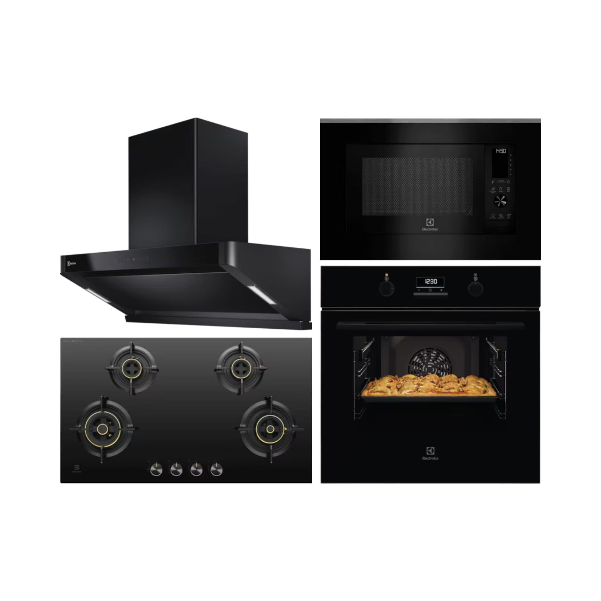 Electrolux Oven UltimateTaste 500 KOD3H50BK + Microwave with Air Fryer UltimateTaste 900 EMSB30XCF + Chimney UltimateTaste 700 Series ECS9939KB + Hob UltimateTaste 300 EHG9430BCI with Free AC