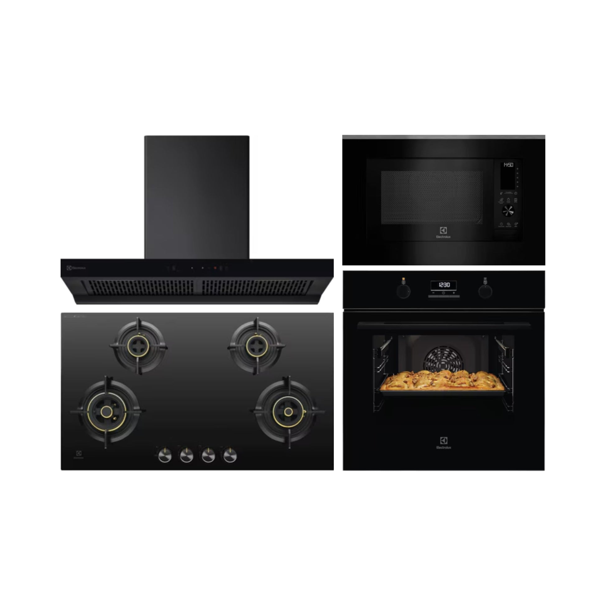 Electrolux Oven UltimateTaste 500 KOD3H50BK + Microwave with Air Fryer UltimateTaste 900 EMSB30XCF + Chimney UltimateTaste 700 Series ECT9841KB + Hob UltimateTaste 300 EHG9430BCI with Festive Price Refridgerator