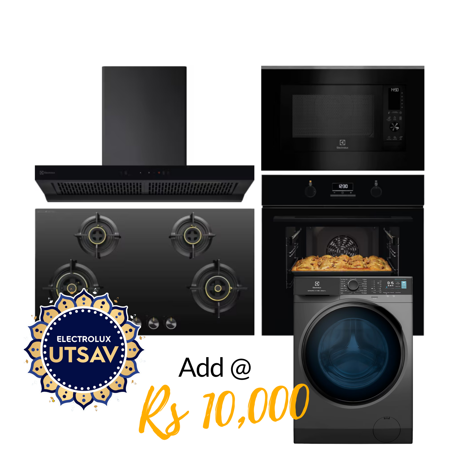 ElectroluxElectrolux Oven UltimateTaste 500 KOD3H50BK + Microwave with Air Fryer UltimateTaste 900 EMSB30XCF + Chimney UltimateTaste 700 Series ECT9841KB + Hob UltimateTaste 300 EHG9430BCI with Festive Price Washing MachineRs. 175,480.00 View details