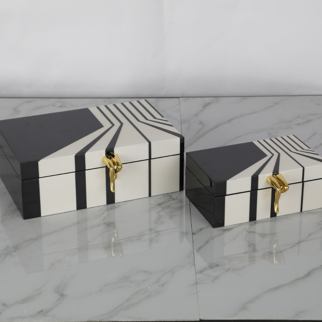 Achieve contrast harmony with our Contrast Harmony: Small Black & White MDF Storage Box. Crafted with precision from durable MDF and embellished with contrasting zinc-alloy accents, this storage box is a captivating addition to your decor. Its small size and monochrome contrast make it a versatile choice for organization. Elevate your organization game and showcase your refined taste with this stylish storage solution. Immerse yourself in the perfect blend of aesthetics and functionality, adding an air of visual harmony to your space.