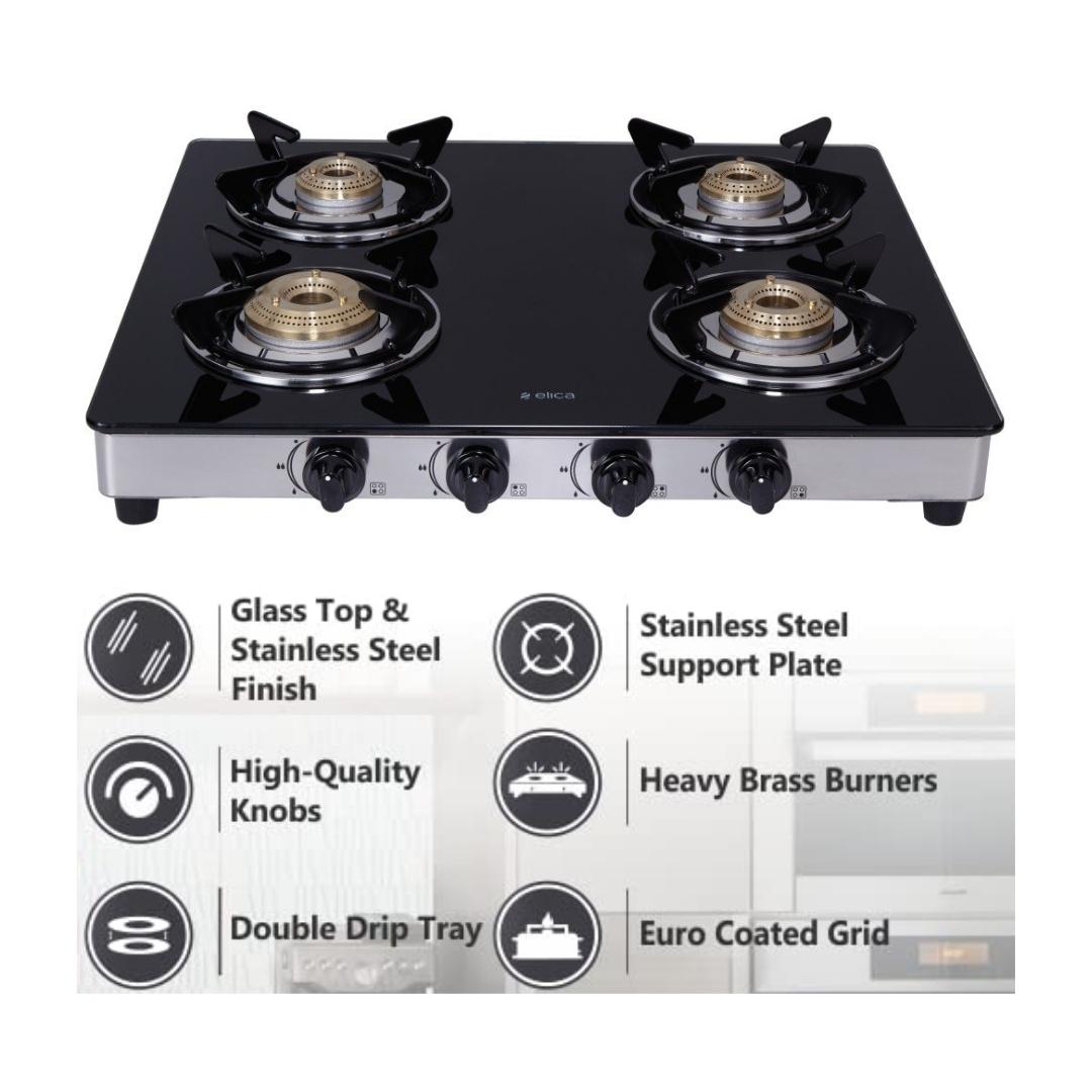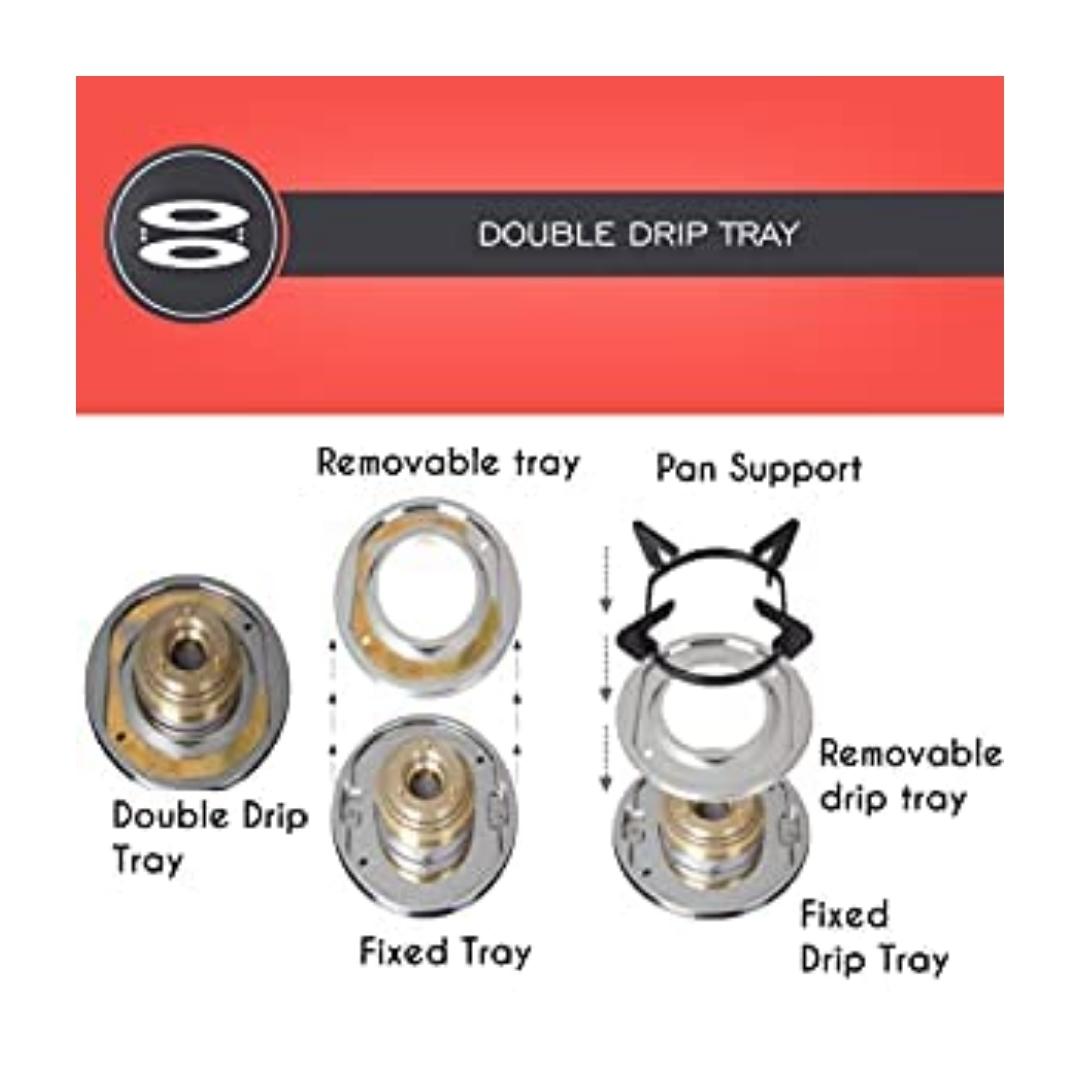 - Double Drip Tray Glass Cooktop with Jumbo Burner