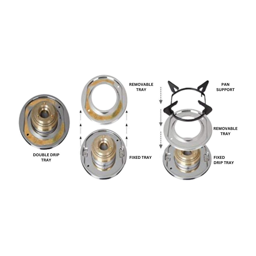 - Brass Burners: 1 Jumbo, 1 Medium, 1 Small