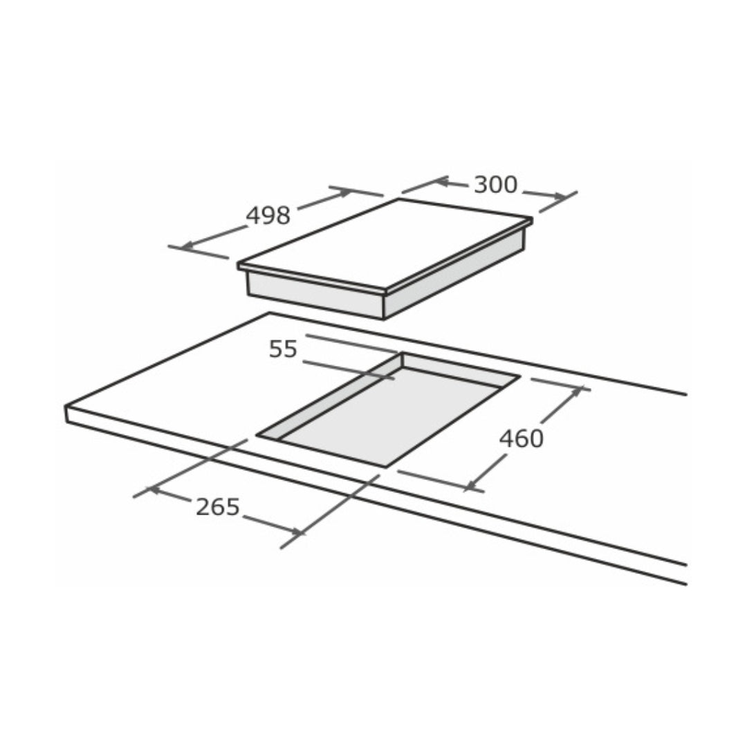 - Cutting size mm (W x D x H): 265 x 460 x 55
