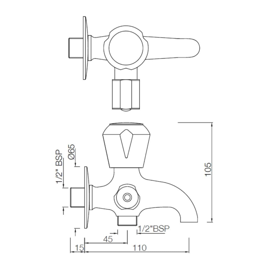 Essco WC Area 2 Way Bib Tap Stella STE-CHR-107041 - Chrome