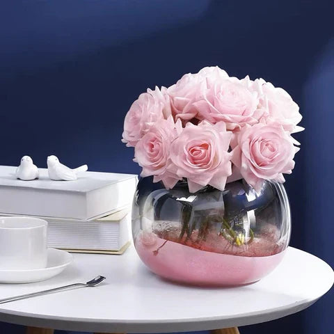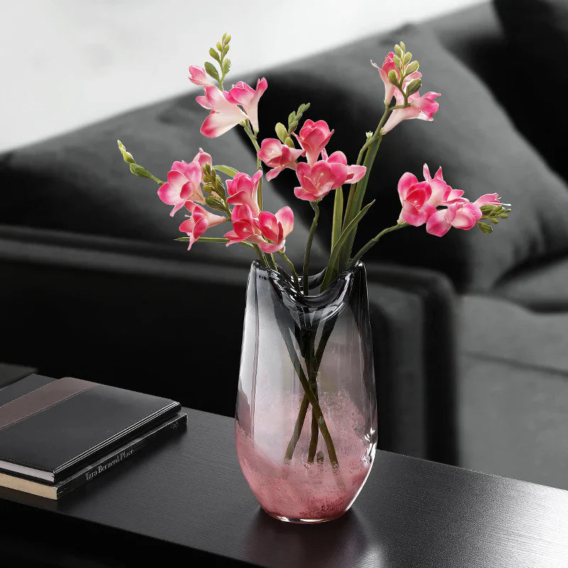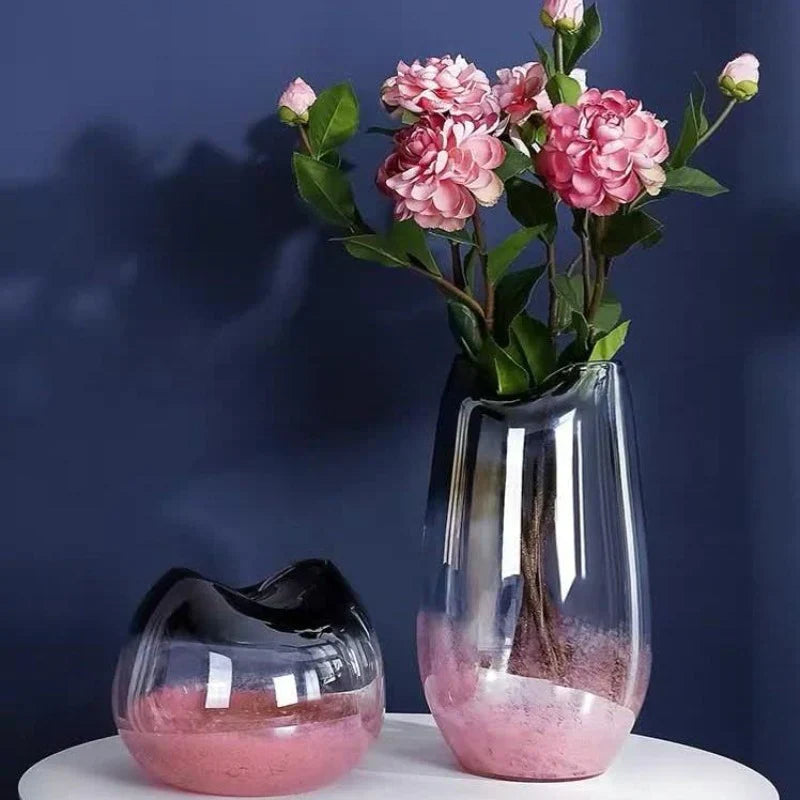 Dive into the enchanting world of the Ethereal Blush Glass Harmony, a masterpiece where delicate pink and sophisticated grey dance in perfect harmony. Crafted with precision from high-quality glass, this vase is a true embodiment of ethereal beauty. Its medium size allows you to create captivating floral displays or elegant artistic arrangements. Whether it graces your dining table, enhances your living room decor, or becomes the centerpiece of a special event, this vase invites you to embrace the delicate balance between the soothing grey and the romantic blush. Elevate your space with the sheer elegance and grace of this glass masterpiece, where the colors of serenity and passion coexist in perfect harmony.